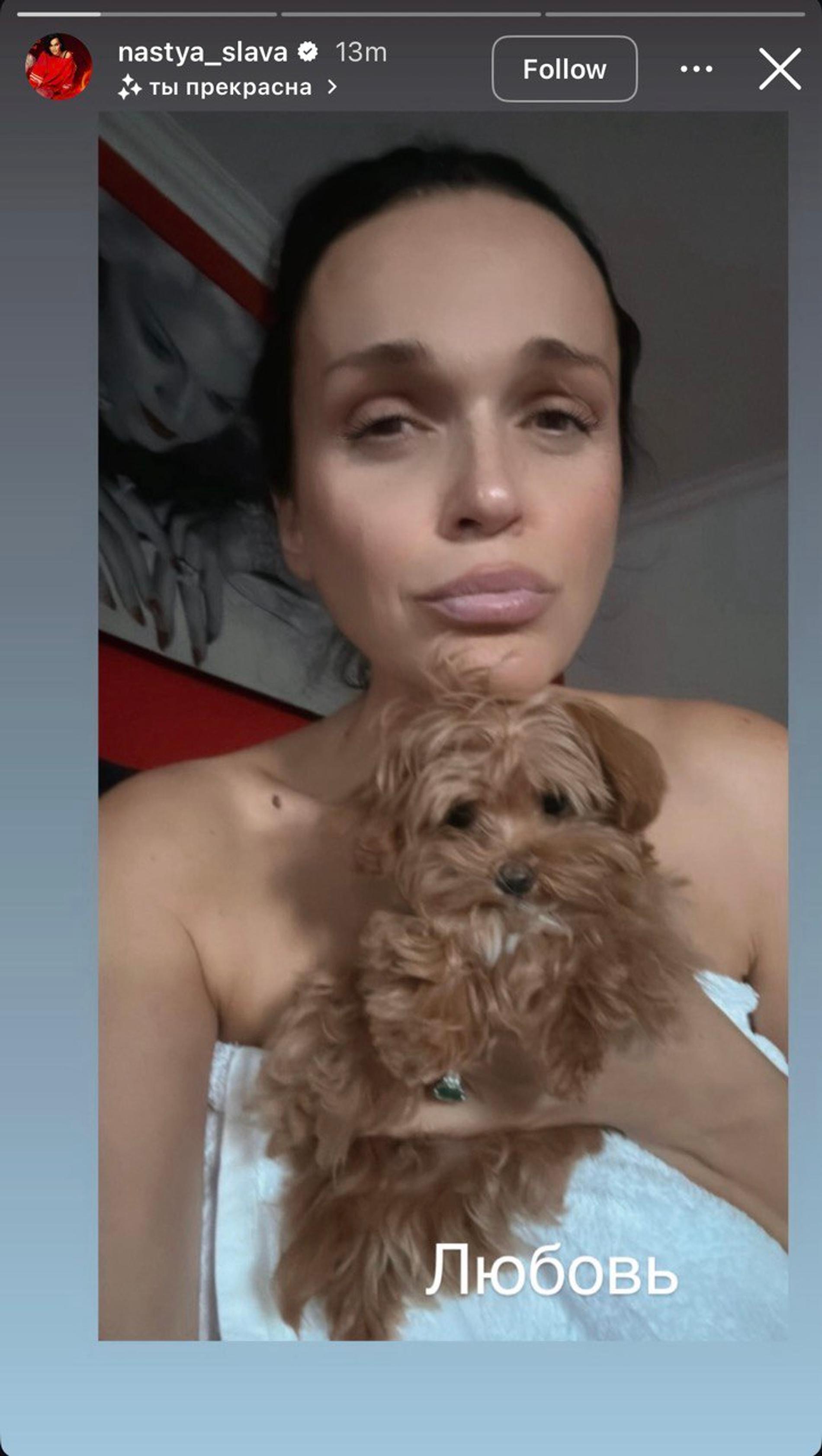 В посте в запрещённой социальной сети певица предложила подписчикам выбрать имя для щенка. «У меня доченька! Мой антидепрессант найден. Супер мини мультипу. Давайте назовём его вместе, а то у меня только "семечка", у Коли - Селин. Но это всё не то!»