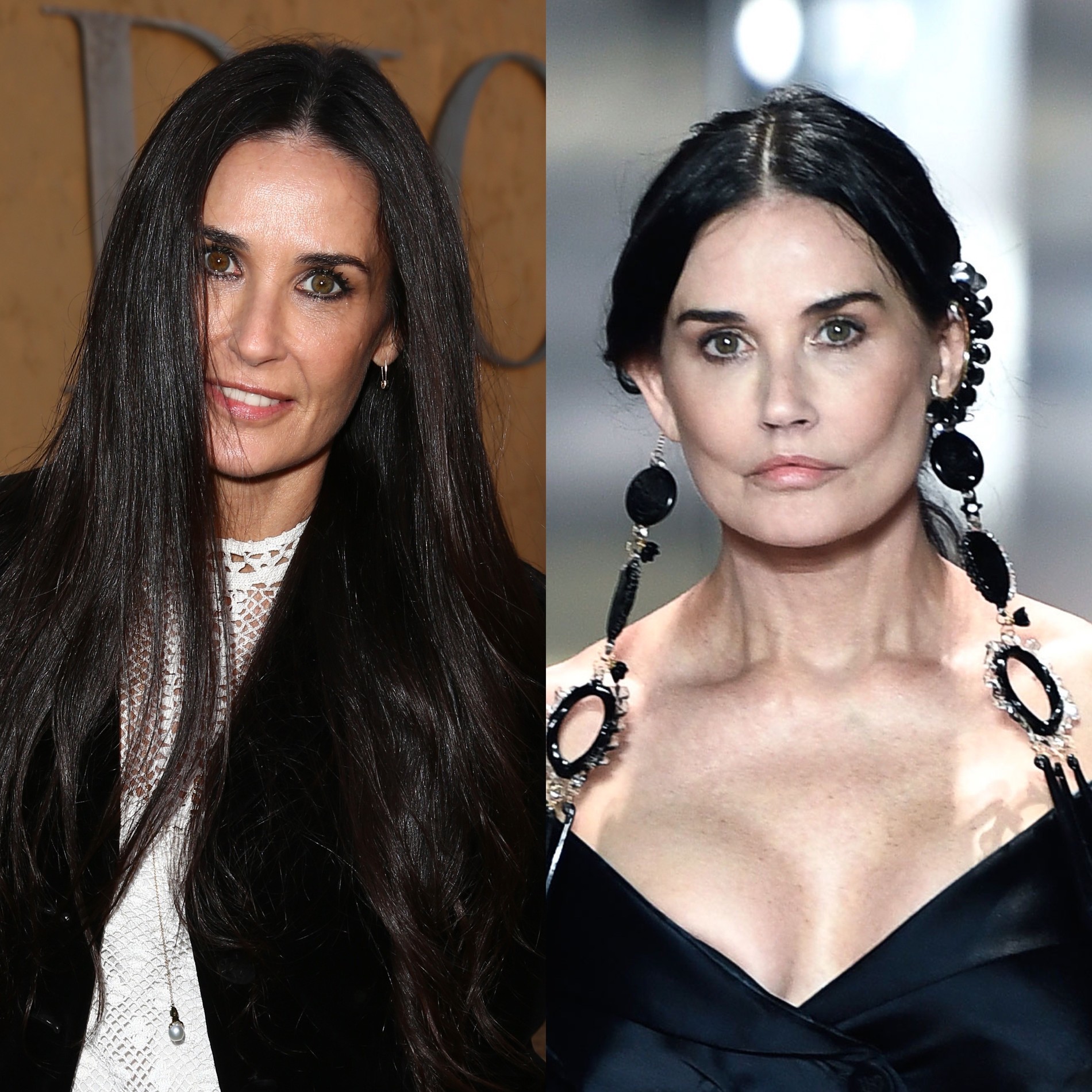 Не секрет, что Деми Мур не раз экспериментировала со своей внешностью. Зарубежные таблоиды приписывают ей как минимум пластику груди, носа, ягодиц и век. В прошлом году актриса испугала поклонников своим новым лицом, выйдя на подиум на показе Fendi. Зрители не сразу узнали Мур, а пресса напрочь забыла о коллекции бренда, переключившись на внешность актрисы. Кто-то пенял на грим, некоторые косметологи грешили на неудачный нитевой лифтинг или удаление комков Биша — была выдвинута масса предположений. Ясно одно: без вмешательства докторов не обошлось. Зарубежные специалисты бьют себя в грудь и утверждают, что в Голливуде уровень пластической хирургии крайне высок, а значит, именно такого результата Мур якобы и добивалась.