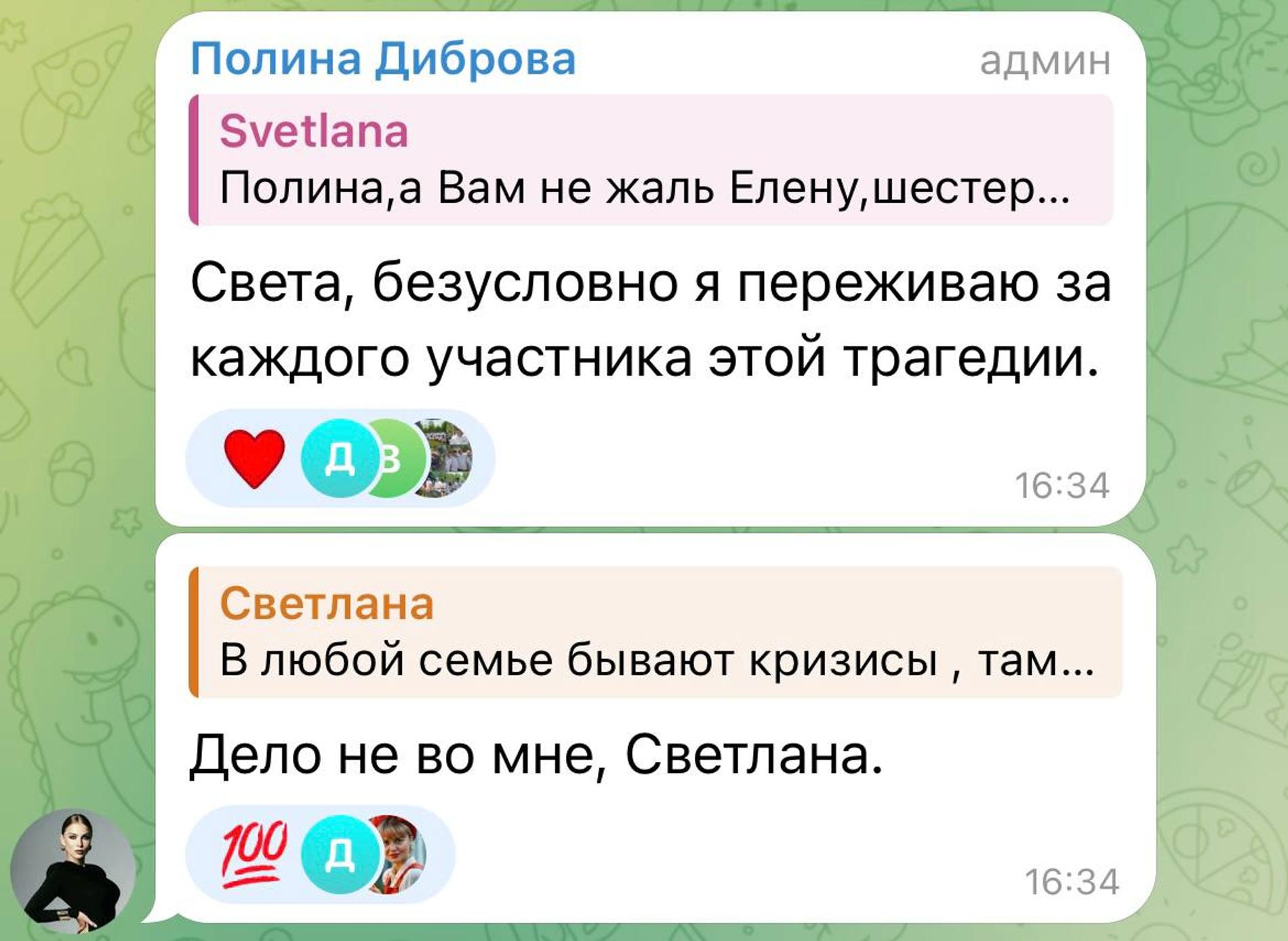 Полина Диброва не стала терпеть негативные комментарии в личном блоге и подробно ответила всем недовольным её личной жизнью. В том числе блогер ответила на вопрос, не жалко ли ей соперницу в делах сердечных — многодетную маму Елену Товстик. «Безусловно, я переживаю за каждого участника этой трагедии», — призналась Полина. Впрочем, виновной в семейной драме она себя не считает. «Дело не во мне», — написала она.