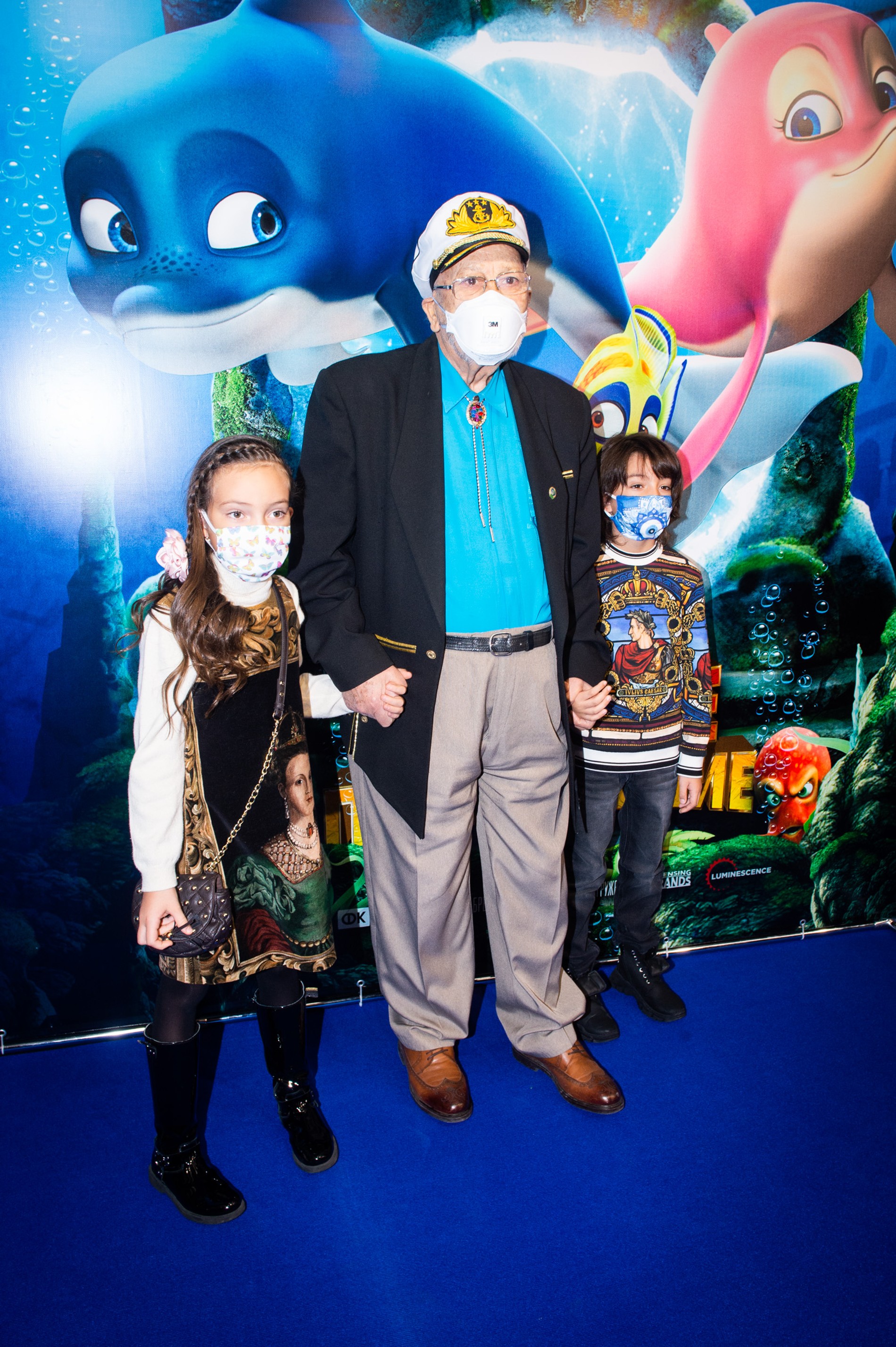 8-летний Мартин и 9-летняя Алла-Виктория Киркоровы сначала позировали фотографам со своим дедушкой — Бедросом Киркоровым, а потом с папой — Филиппом. Последний, кстати, озвучивал одного из главных персонажей в мультфильме — осьминога Октавиана. Дельфина Мию, тоже главного персонажа, озвучивала Полина Гагарина. Она появилась на премьере в сопровождении сына, 13-летнего Андрея.