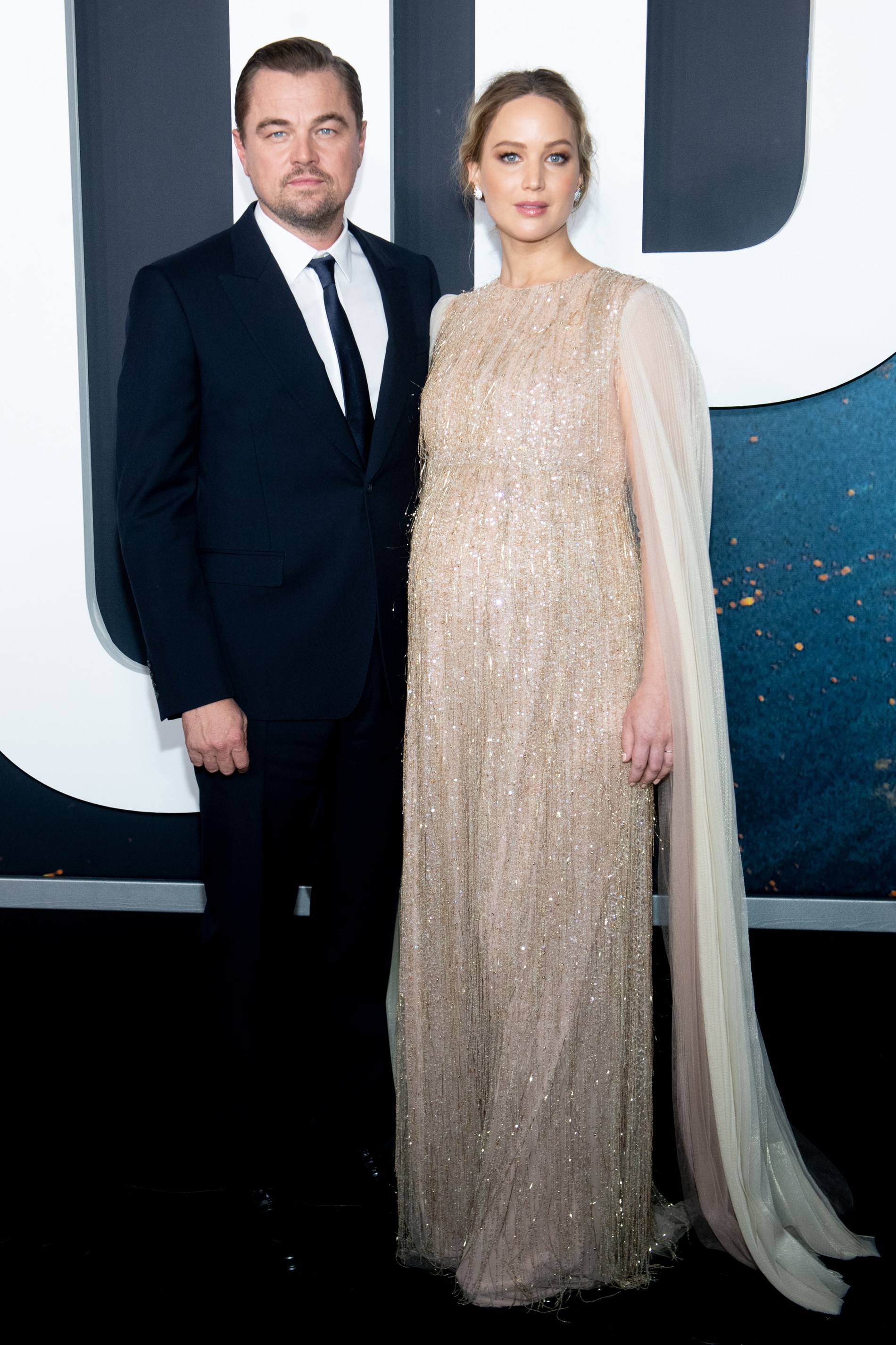 Беременная Дженнифер Лоуренс и Леонардо Ди Каприо на премьере фильма «Не смотрите наверх» в Нью-Йорке