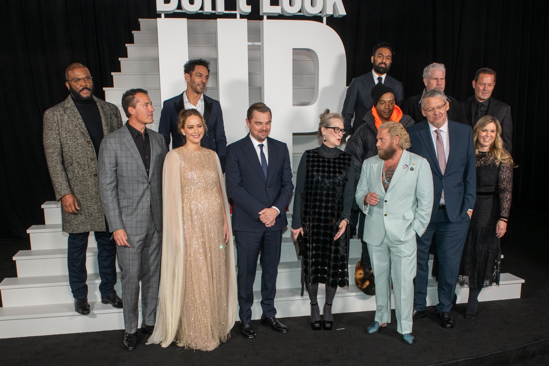 На презентацию фильма пришли и другие исполнители ролей — Джона Хилл и Флоренс Пью. В фильме Леонардо Ди Каприо и Дженнифер Лоуренс сыграли двух ученых, которые узнают о приближении к Земле огромного метеорита, однако люди им верить отказываются. За свою роль Ди Каприо получил гонорар в размере 30 миллионов долларов, его коллега Лоуренс `— 25 миллионов.
