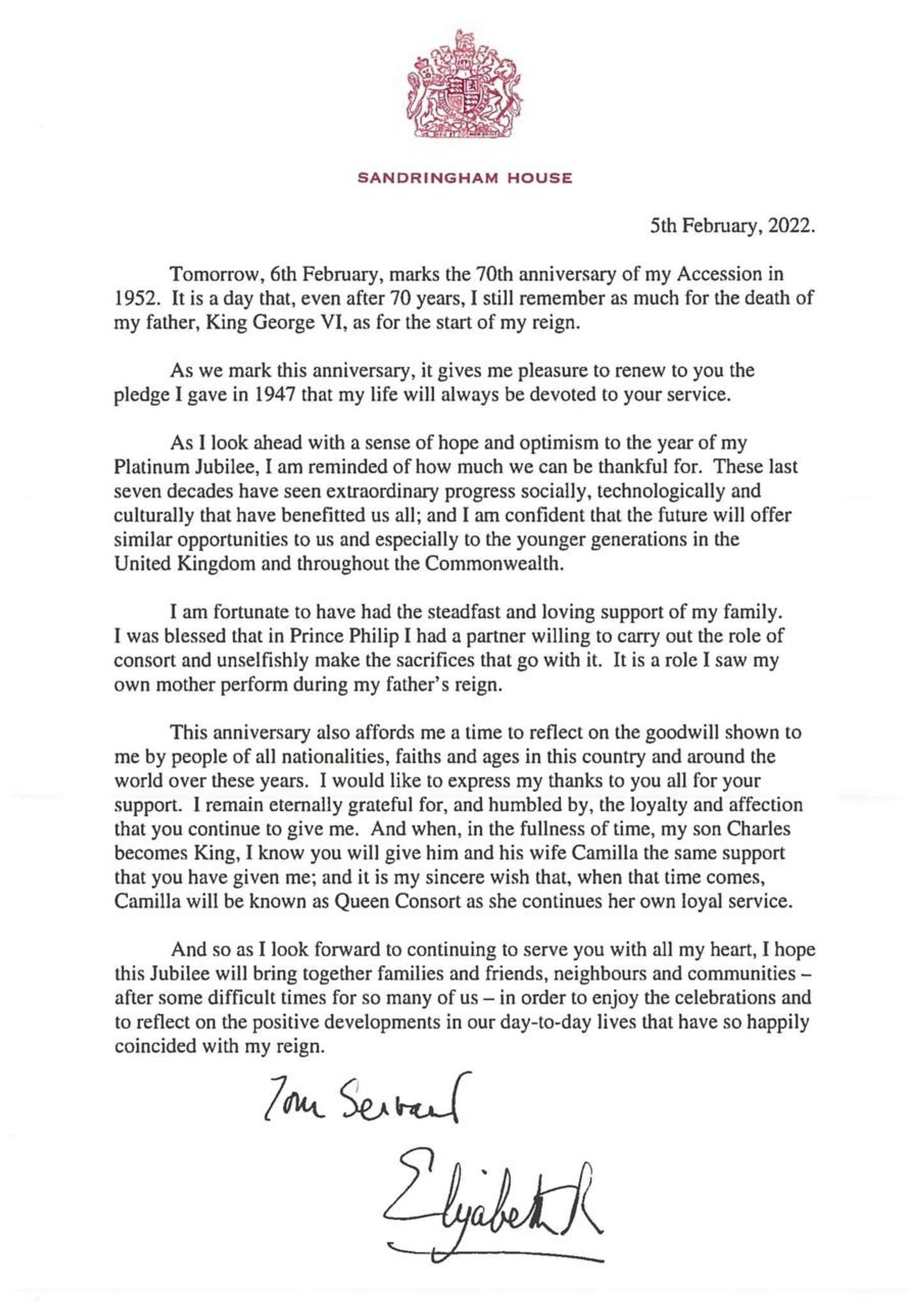 В преддверии своего 70-летия на престоле Елизавета II решила серьезно позаботиться о судьбе королевства. В честь своего платинового юбилея монарх объявила, что когда ее сын принц Чарльз взойдёт на престол, его супруга Камилла будет официально именоваться королевой.