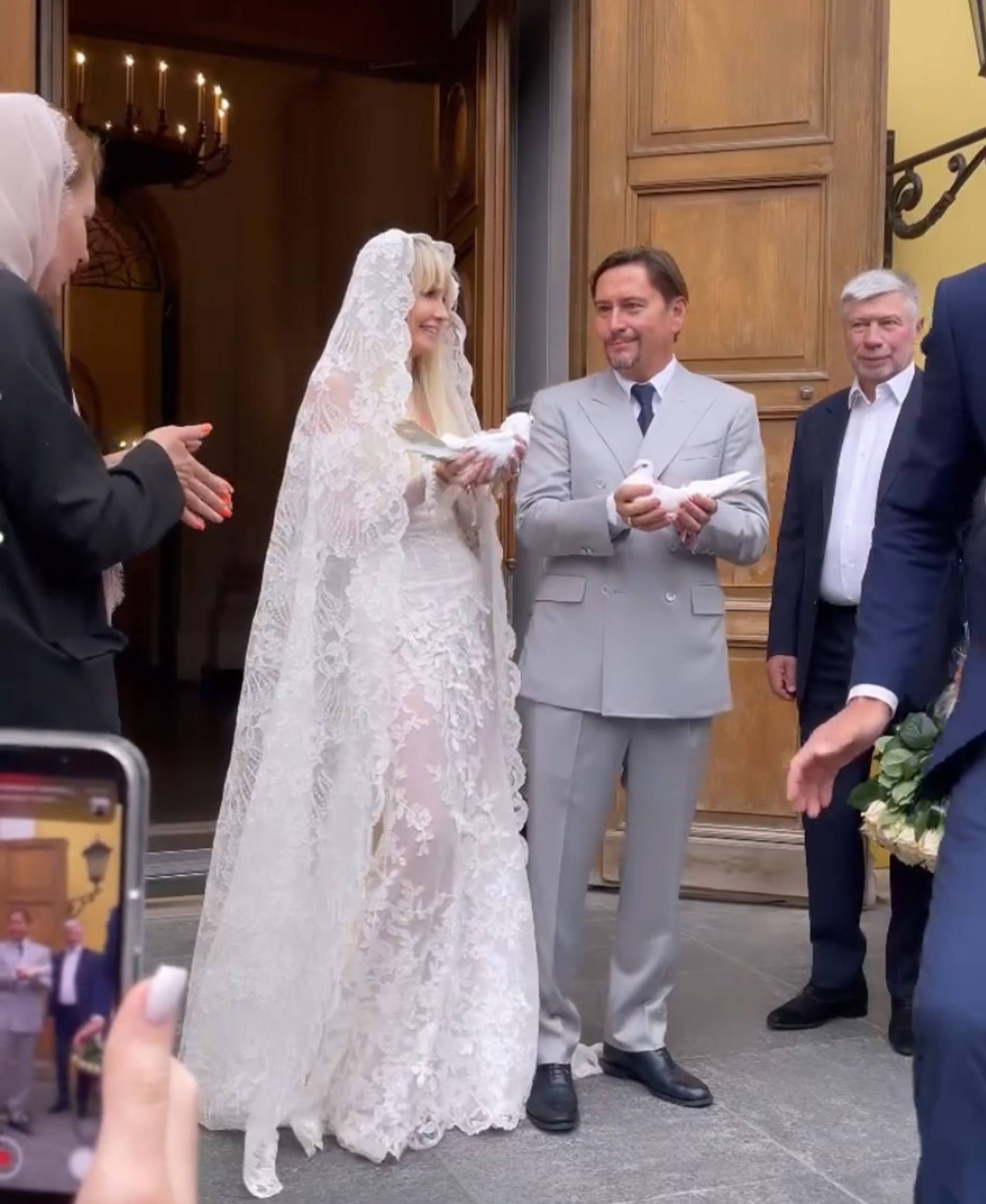 На венчании собрались многочисленные друзья Расковаловых: например, Татьяна Навка и Дмитрий Песков, Яна Рудковская, Константин Богомолов, певица Жасмин и Лена Перминова. Последняя даже поймала заветный букет невесты — осталось готовить приданое.