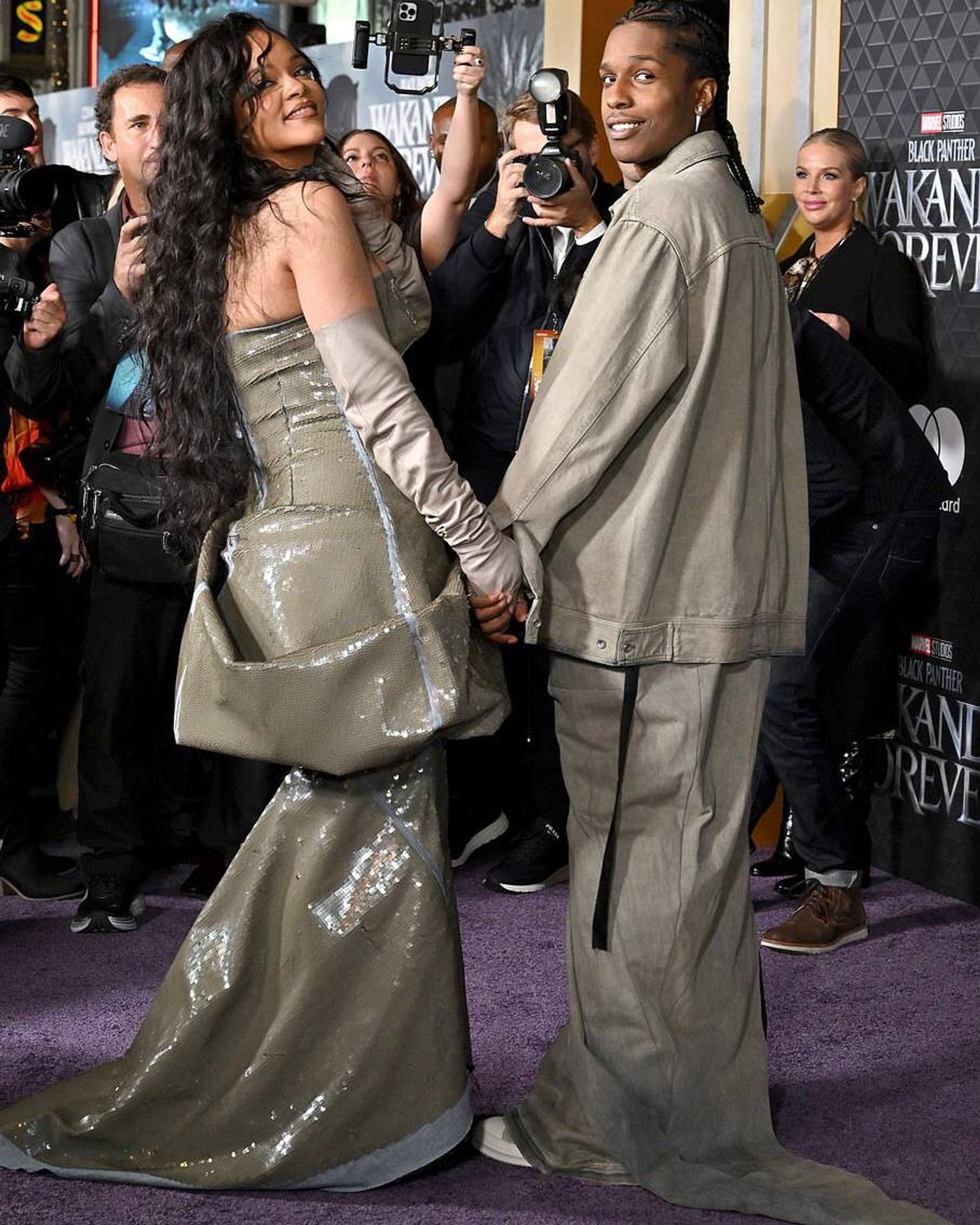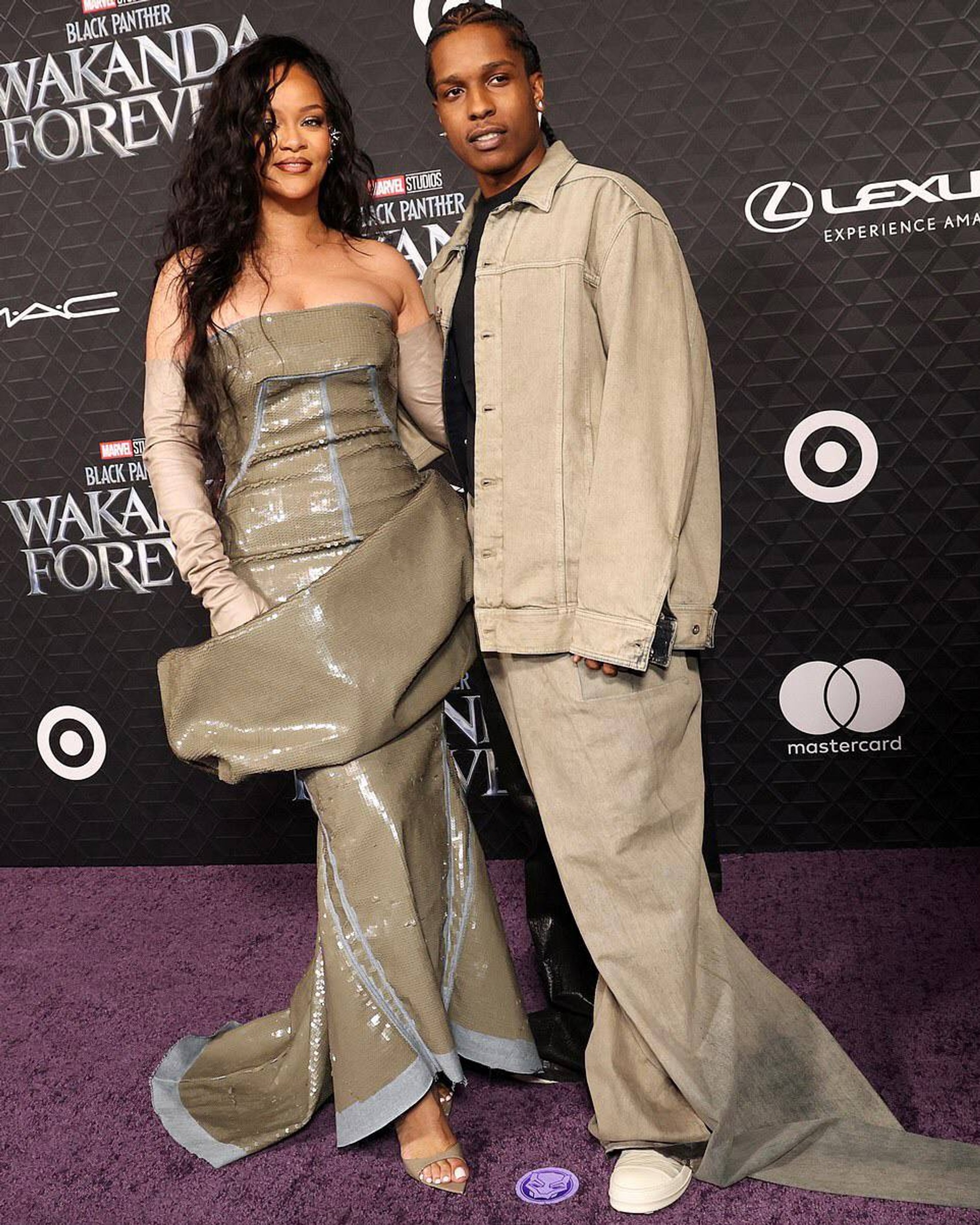 Почти полгода назад Рианна стала мамой. У нее и музыканта A$AP Rocky родился сын. Ребенка пара не показывает, да и сами знаменитости теперь редко выходят в свет, поэтому папарацци ловят их разве что только по дороге в ресторан или в два часа ночи за пиццей. Но вчера молодые родители решили нарушить свой антисветский режим и появились на премьере фильма «Черная пантера: Ваканда навсегда».