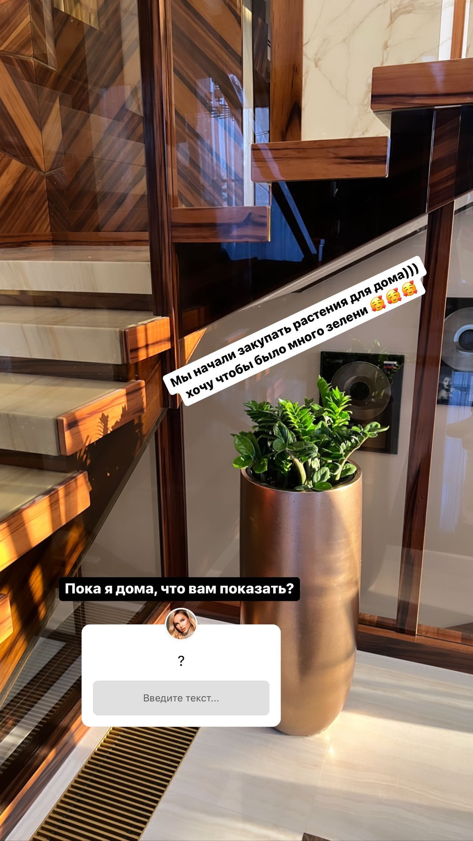 Ханна не забывает заботиться об уюте: вместе с Пашу певица закупает живые растения. Судя по фото и видео, для интерьеров загородного дома пара выбрала офисный хит — замиокулькас. Растение как нельзя лучше подойдет для молодой мамы: оно не требует частого полива и особого ухода.