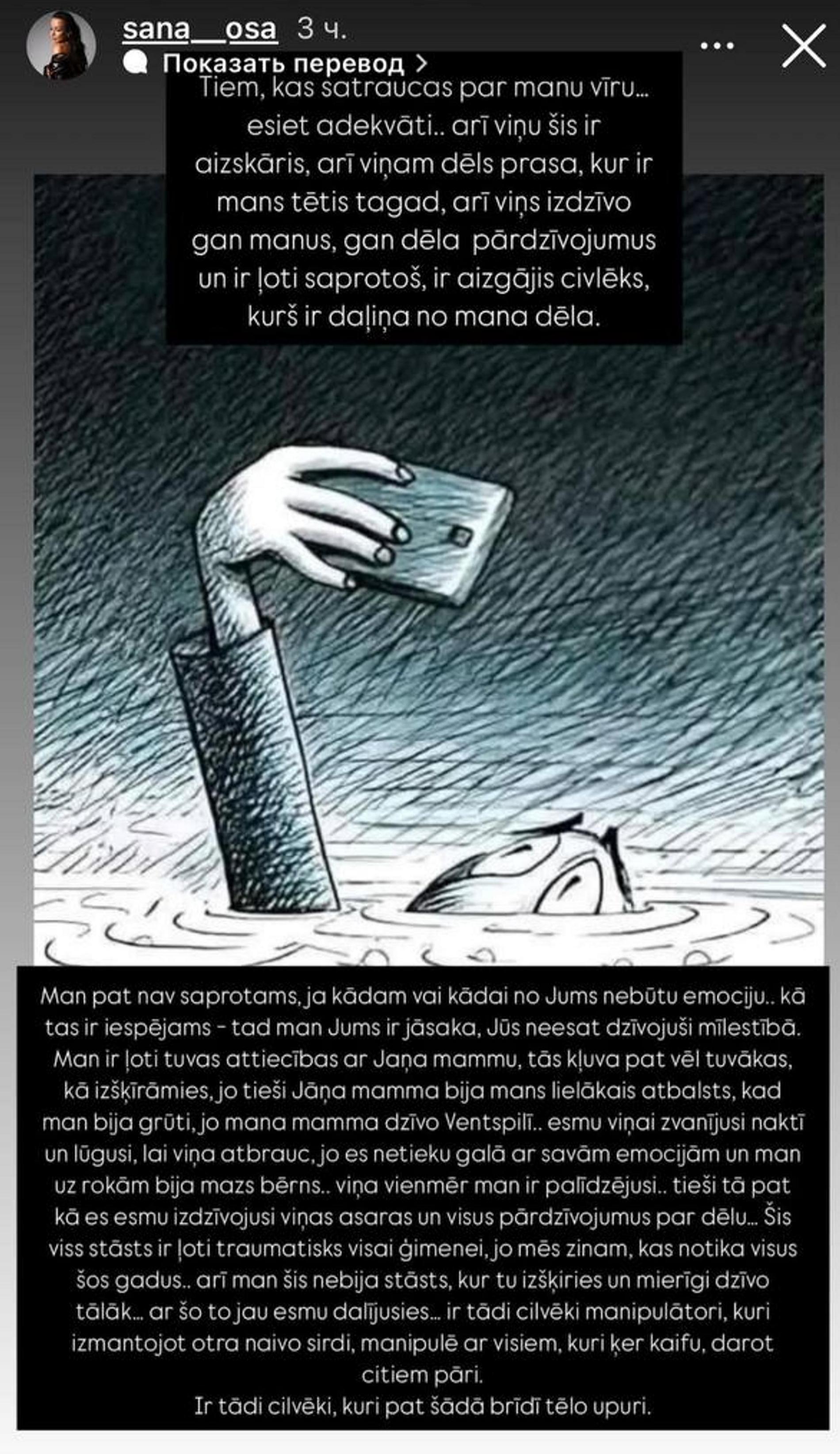 Сана подчеркивает, что ее тревожит и даже злит все происходящее главным образом из-за ребенка, который лишился отца. В своем душераздирающем заявлении она не называет имен, однако вполне очевидно, о ком идет речь: Оша, кажется, нетонко намекает, что Анна Седокова и в самом деле каким-то образом причастна к уходу из жизни Яниса. Впрочем, со всем этим еще предстоит разобраться. Пока что окружение Тиммы продолжает делиться шокирующими подробностями о том, что предшествовало трагической гибели.