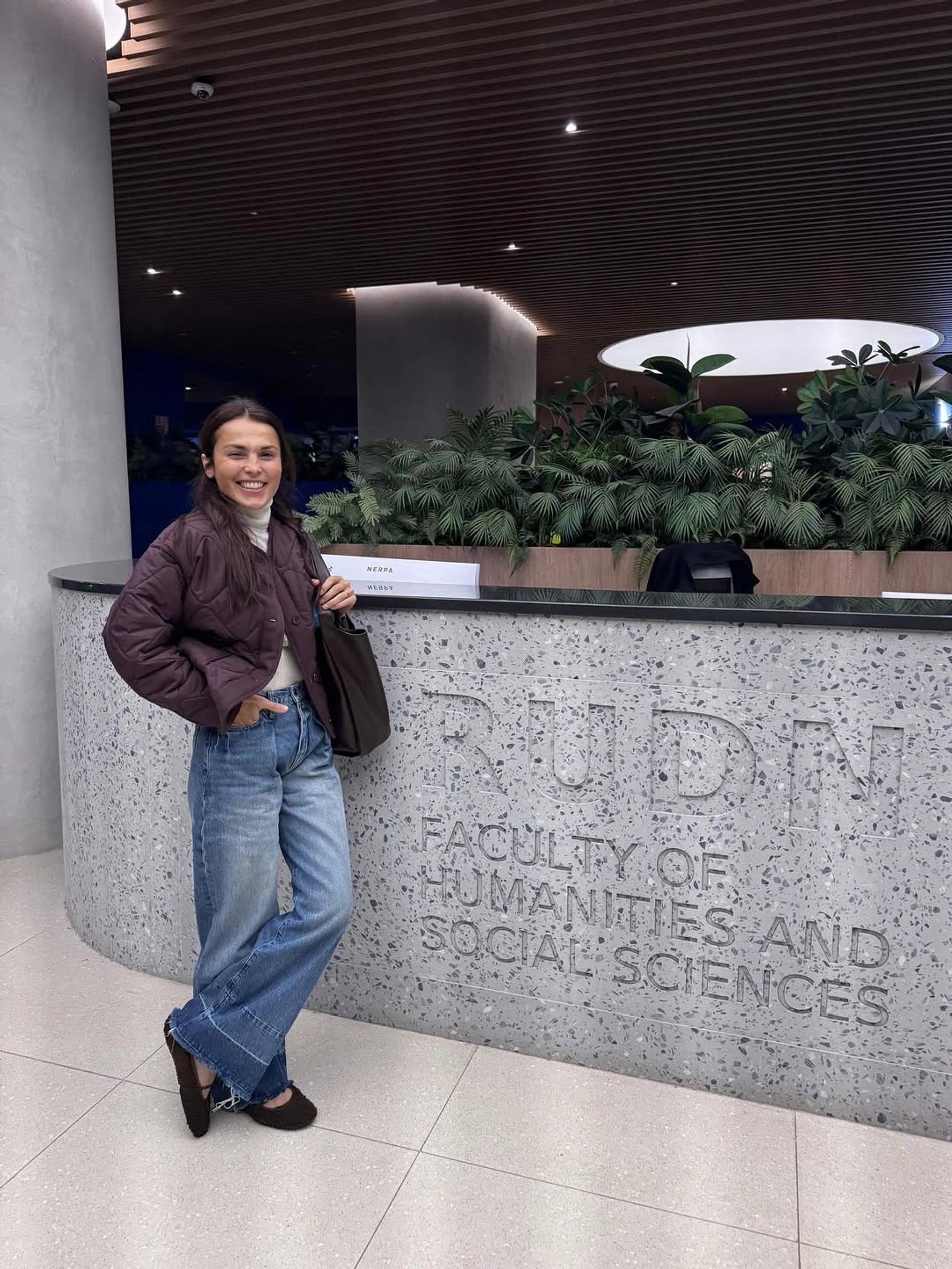 На фото певица позирует у входа в вуз и в аудитории, где, по её словам, начнётся «новое духовное приключение».