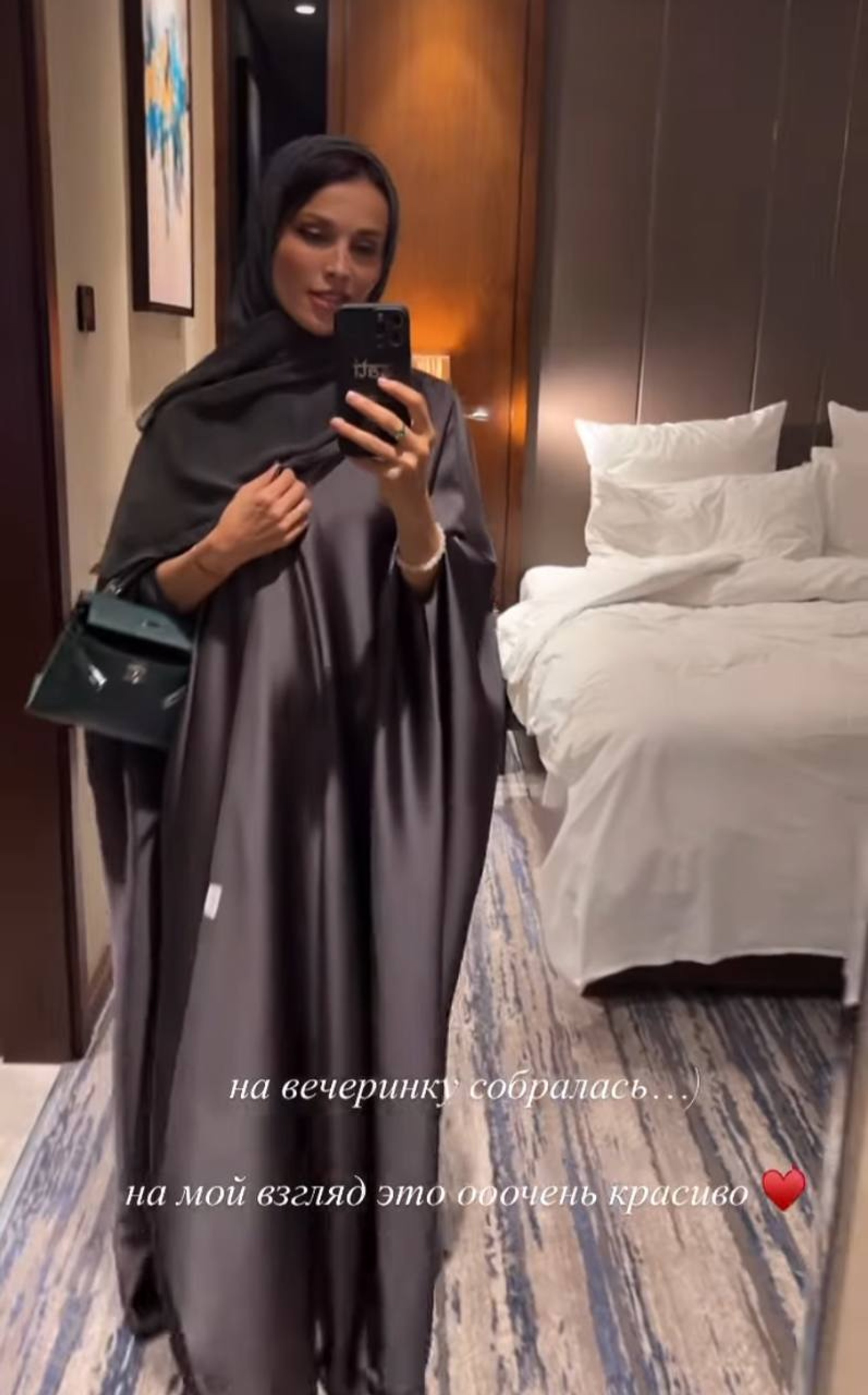 «На вечеринку собралась…» — интригует Сати Казанова в подписи к сторис. Первые пару секунд видео певица показывает свои сияющие босоножки, а потом меняет ракурс — и предстает перед подписчиками в черном хиджабе. Казанова находится в столице Саудовской Аравии, городе Эр-Рияд, так что костюм вполне уместен.