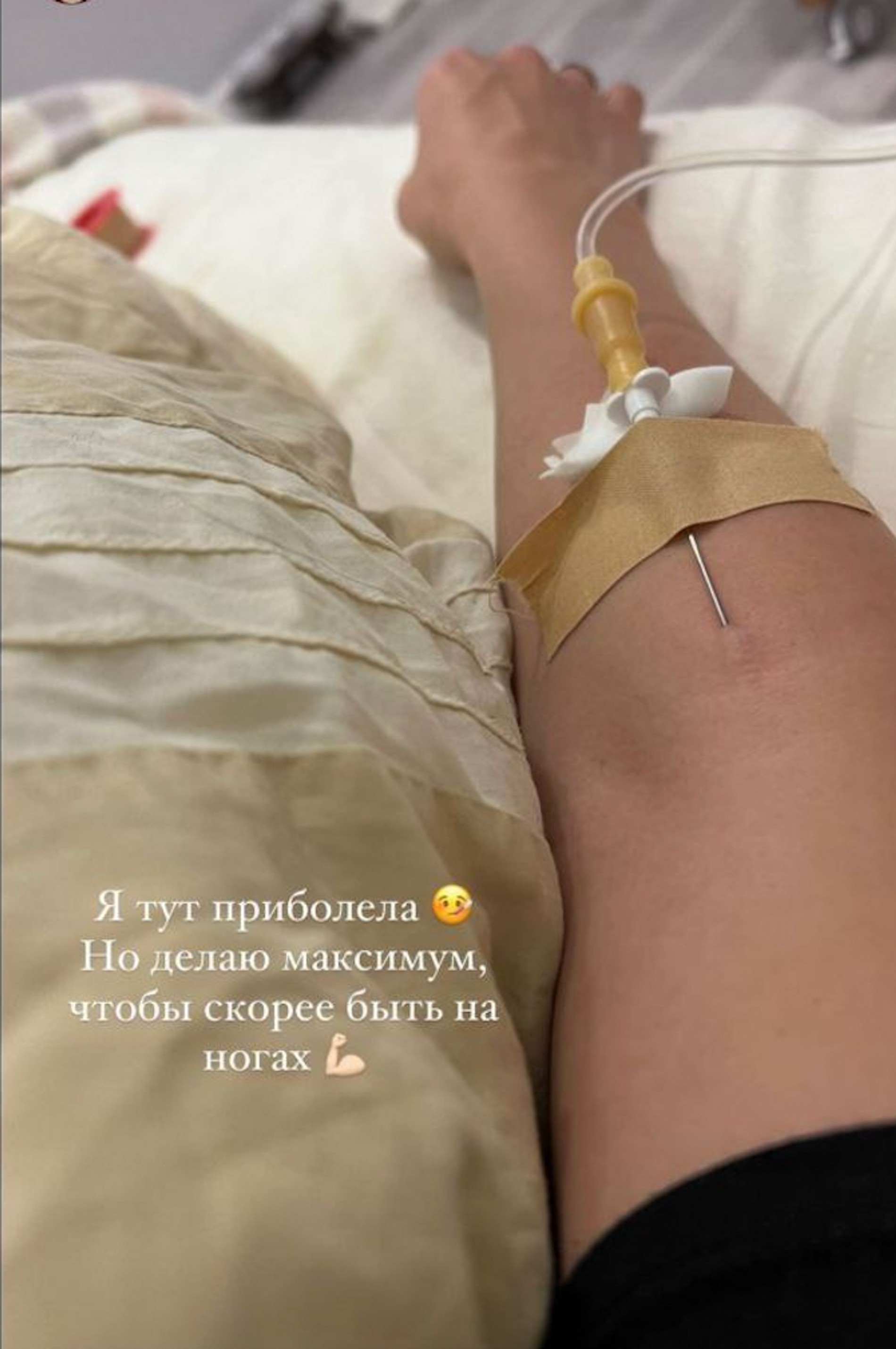 Что именно случилось у Ольги Серябкиной и каков диагноз врачей, мы не знаем — об этом певица предпочла умолчать. Она всего лишь опубликовала в Инстаграме (запрещен в РФ) фото, на котором лежит в постели под капельницей. Подпись максимально лаконичная, но все же заставляющая фанатов поволноваться. «Я тут приболела, — пишет экс-участница группы «Серебро». — Но делаю максимум, чтобы скорее быть на ногах». Что же, надеемся, что ничего серьезного не произошло и желаем скорейшего выздоровления!