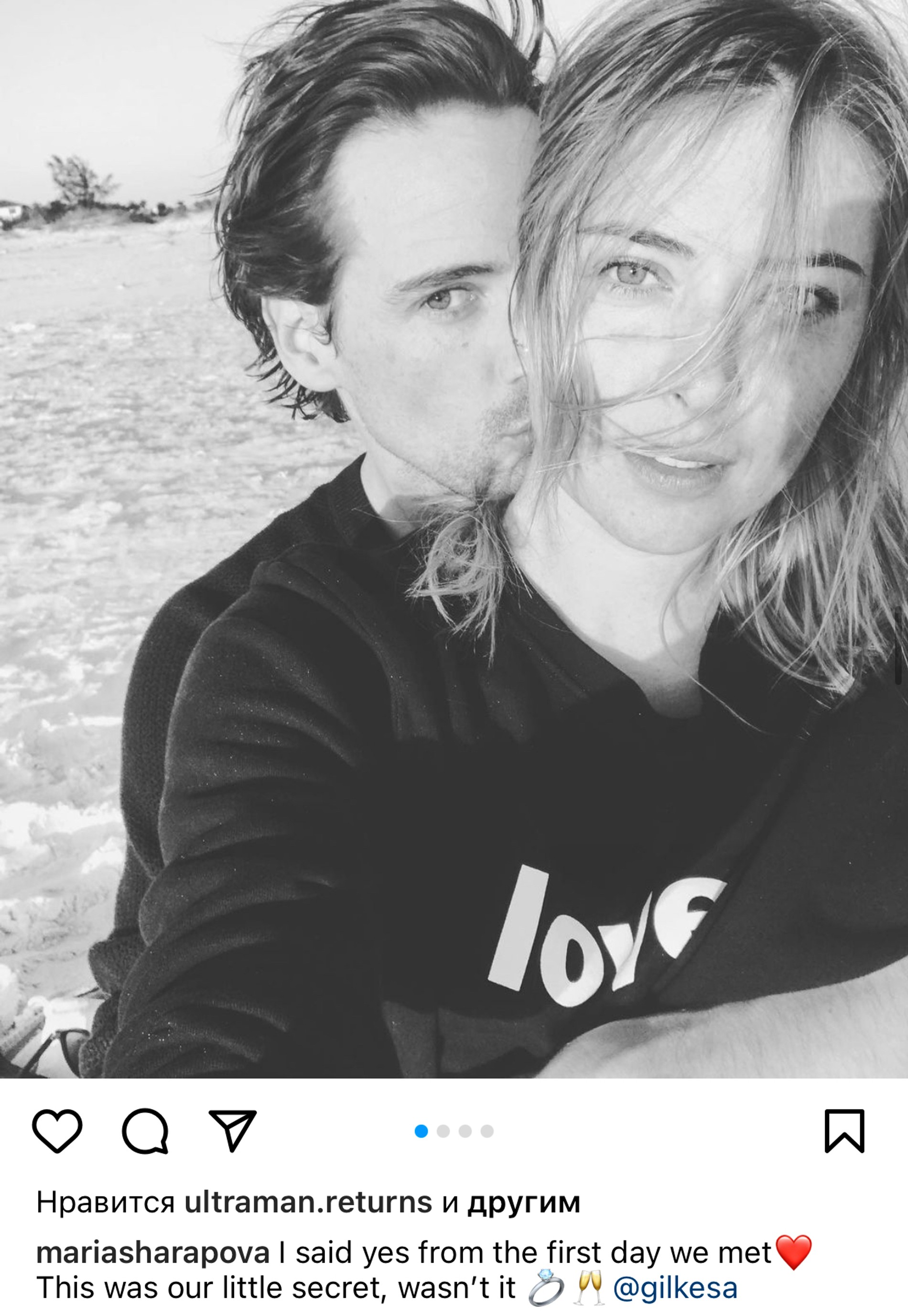 Возлюбленный Шараповой — британский бизнесмен, аукционист и друг принца Уильяма Александр Гилкс. Пара встречается с 2018 года и редко публикует совместные снимки. В декабре 2020 года Мария объявила о помолвке, написав: «Я сказала «да» еще в первый день нашей встречи, это был наш маленький секрет, не правда ли?»
