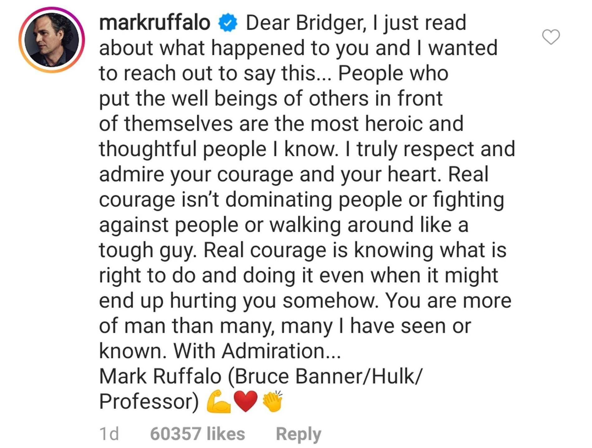 Чтобы поднять боевой дух мальчика, его тетя решила поделиться историей смельчака в соцсетях и привлечь к ней внимание его кумиров — звезд супергеройских блокбастеров Marvel. И ей это удалось. Этим утром с Бриджером говорил по телефону Человек-паук (Том Холланд), а на днях Халк (Марк Руффало) оставил под фото мальчика комментарий, восхитившись отвагой юного поклонника.