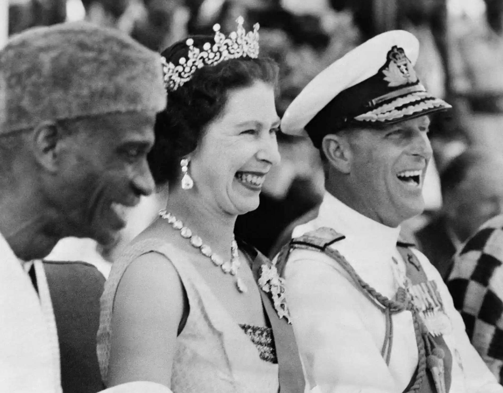 1961: Елизавета II и принц Филипп под впечатлением от традиционных танцев народа сусу во время визита в Сьерра-Леоне.