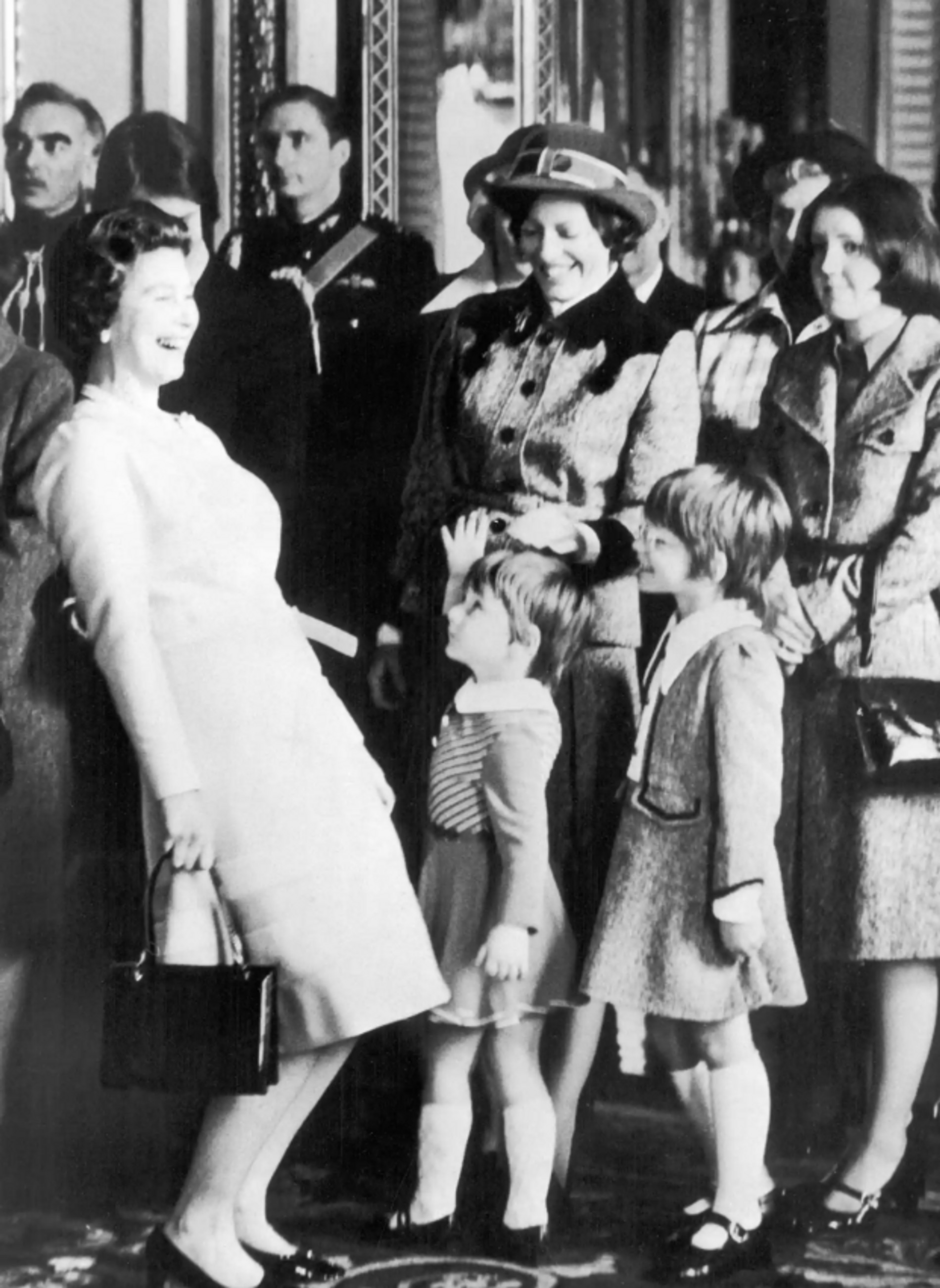 1974: королева смеется над шуткой дочери Джеймса Битона — полицейского, который был награжден крестом Георга за героическую (шутка ли, три серьезных пулевых ранения) защиту принцессы Анны во время попытки похищения.