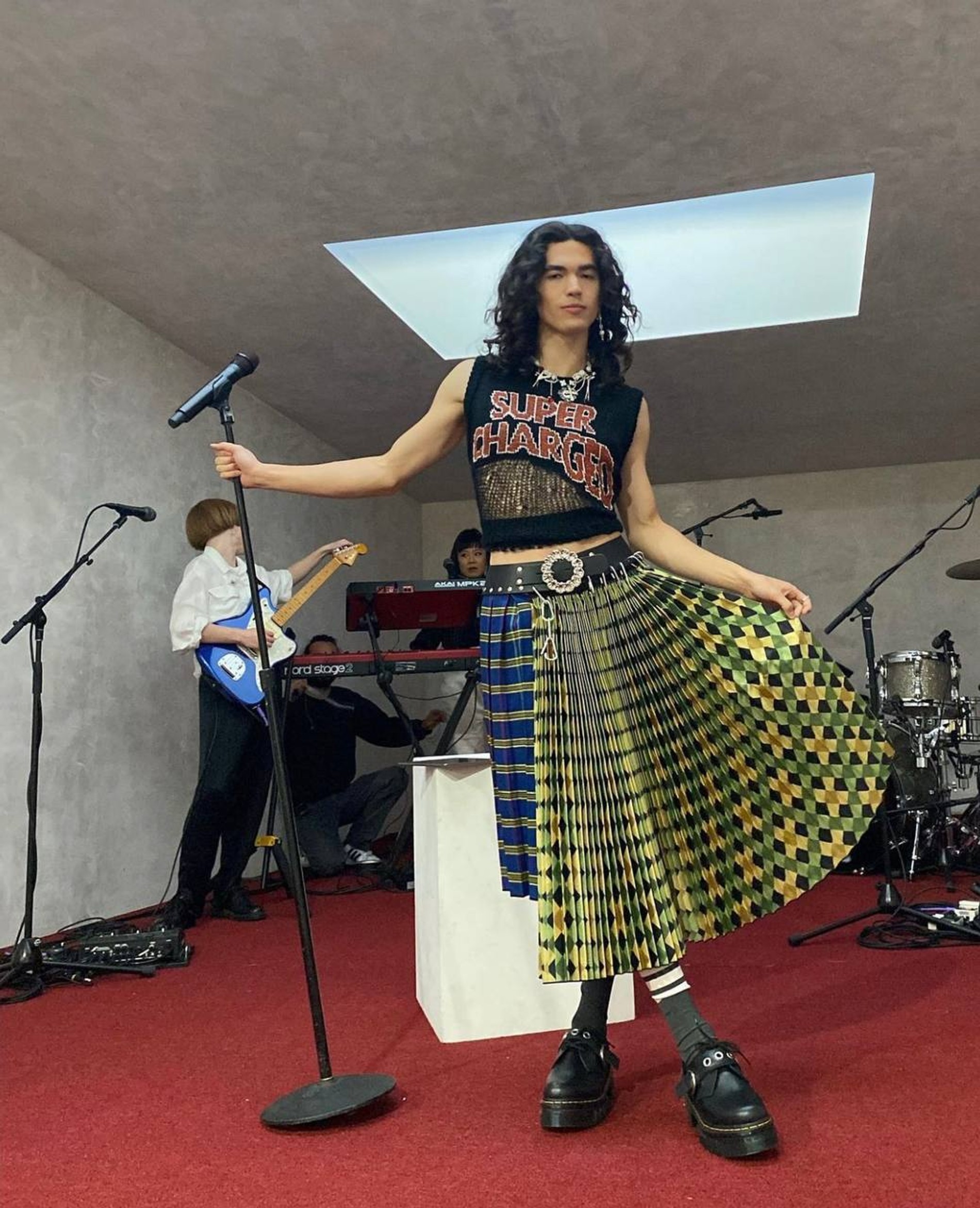 Свято место закэнселенного Эзры Миллера пустовало недолго: на звание самого модного небинарного эксцентрика уже претендует певец и блогер Конан Грей в разноцветном килте Chopova Lowena. Парень даже внешне похож на звезду «Фанастических тварей» — кто-нибудь, позвоните продюсерам!