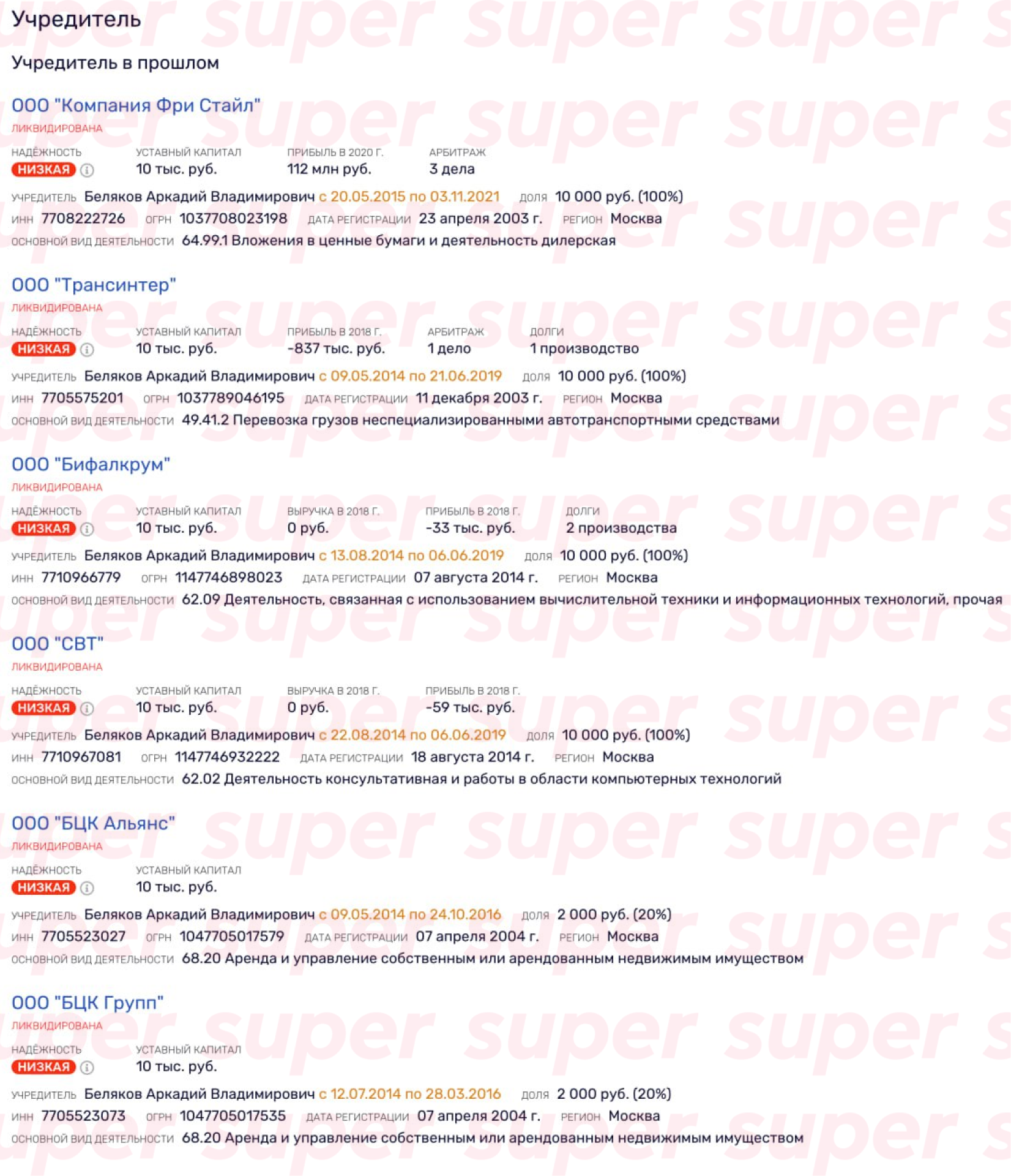 Дольше всего просуществовала фирма «Фри Стайл», которая вела деятельность в области ценных бумаг и тоже приносила убытки. В 2018 году компания ушла в минус на 126 млн рублей, в 2019-м — на 45 млн. Позднее ситуация стабилизировалась, и уже в 2020 году чистая прибыль «Фри Стайл» составила 111 млн рублей. Однако в 2021-м бизнес закрыли.
