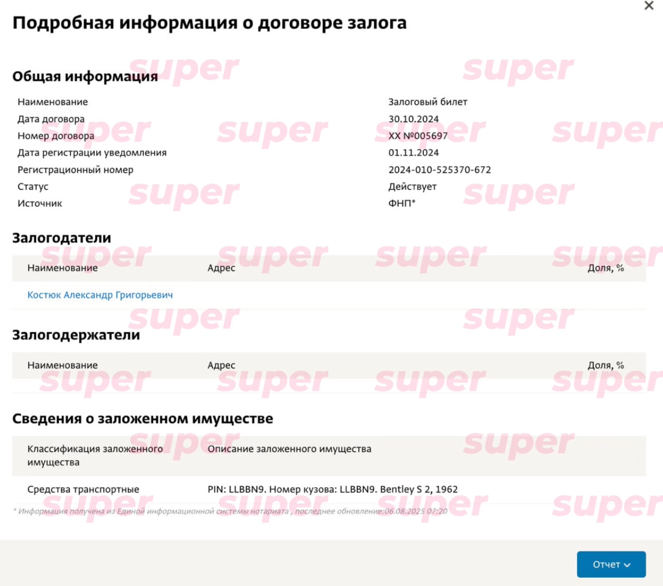 В «СПАРК-Интерфакс» содержится информация о том, что авто находится под залогом. Как правило, это говорит о том, что автомобиль приобретён в кредит, который ещё не выплачен.