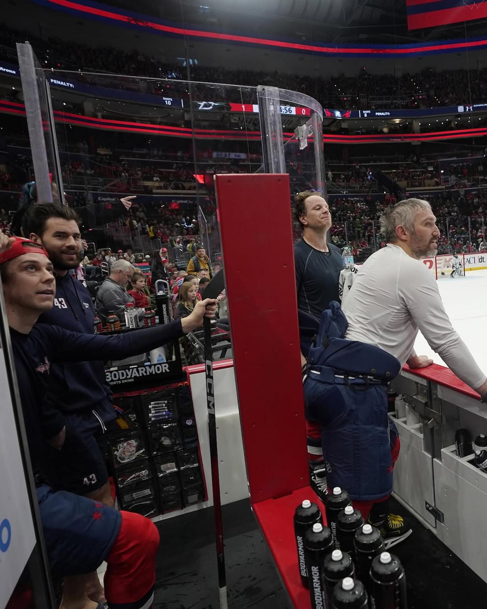 «Первая игра Овечкина-младшего на арене с лучшей поддержкой», — написала супруга Александра Овечкина. На фото видно, как прославленный отец с интересом болел за наследника в кругу соратников.