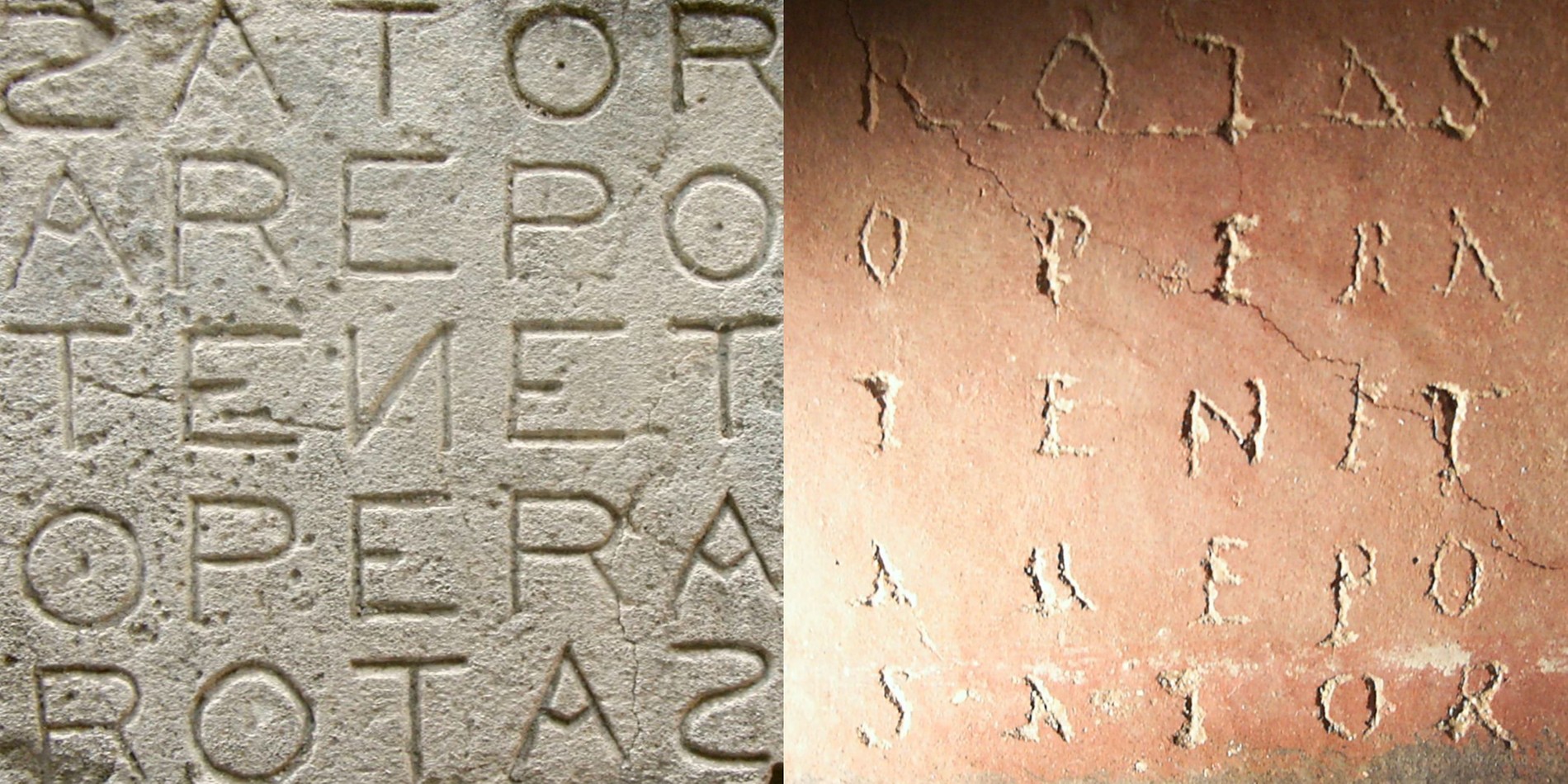 Этот палиндром очень древний, таинственный и вездесущий: два были найдены в развалинах Помпеи, еще множество — при раскопках в Италии, Франции, Сирии, Португалии и других странах. Историки сходятся на том, что его использовали как заклинание для защиты от болезней и злых духов: писали на посуде, домашней утвари, а в средневековой Англии — на бумаге, которую оборачивали вокруг шеи. Кроме того, если буквы в палиндроме поменять местами, он превратится в фразу Pater Noster (Отче наш) и буквы А и О (вероятно, Альфа и Омега — символы Бога как начала и конца всего сущего).