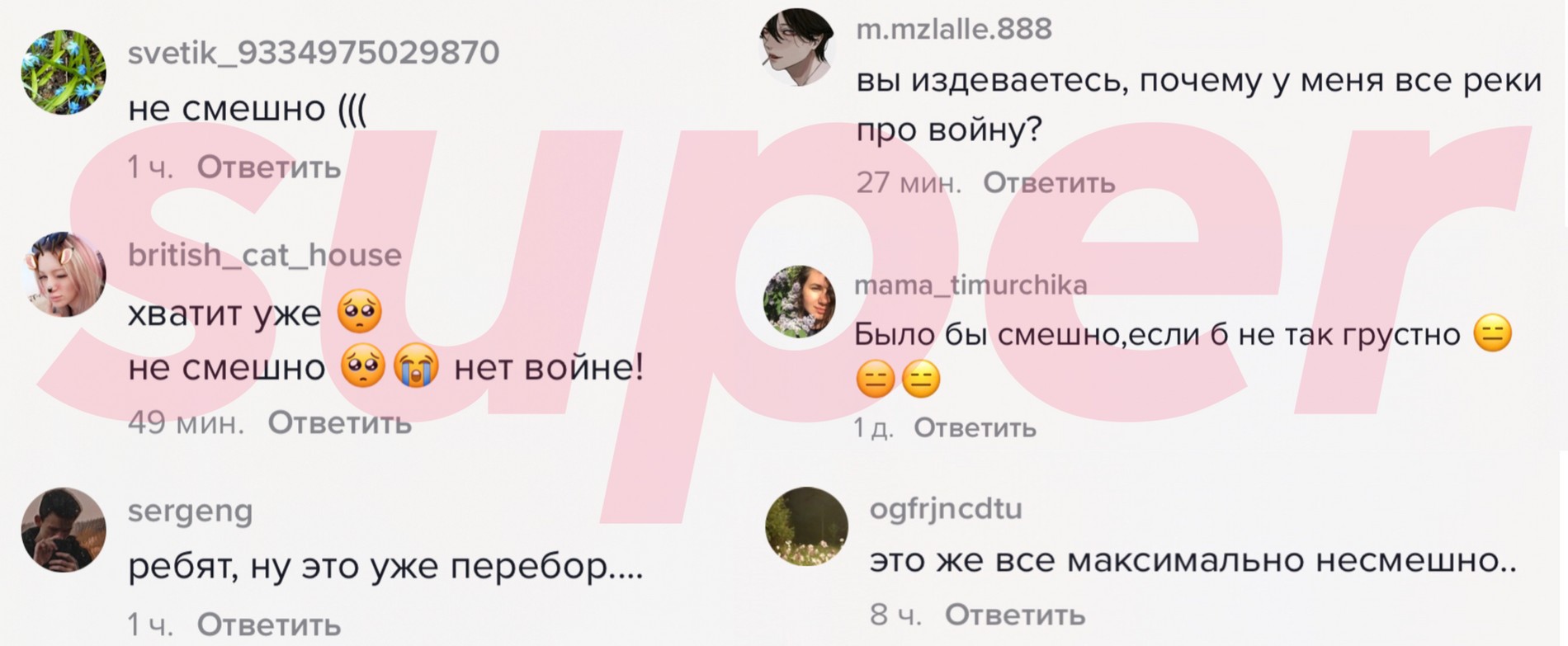 Пользователи TikTok двояко отнеслись к шуткам о военных действиях. Одни сочли это смешными и безобидными попытками отвлечься от ситуации в мире. Другие же, напротив, осудили тиктокеров за хайп на серьезной теме.