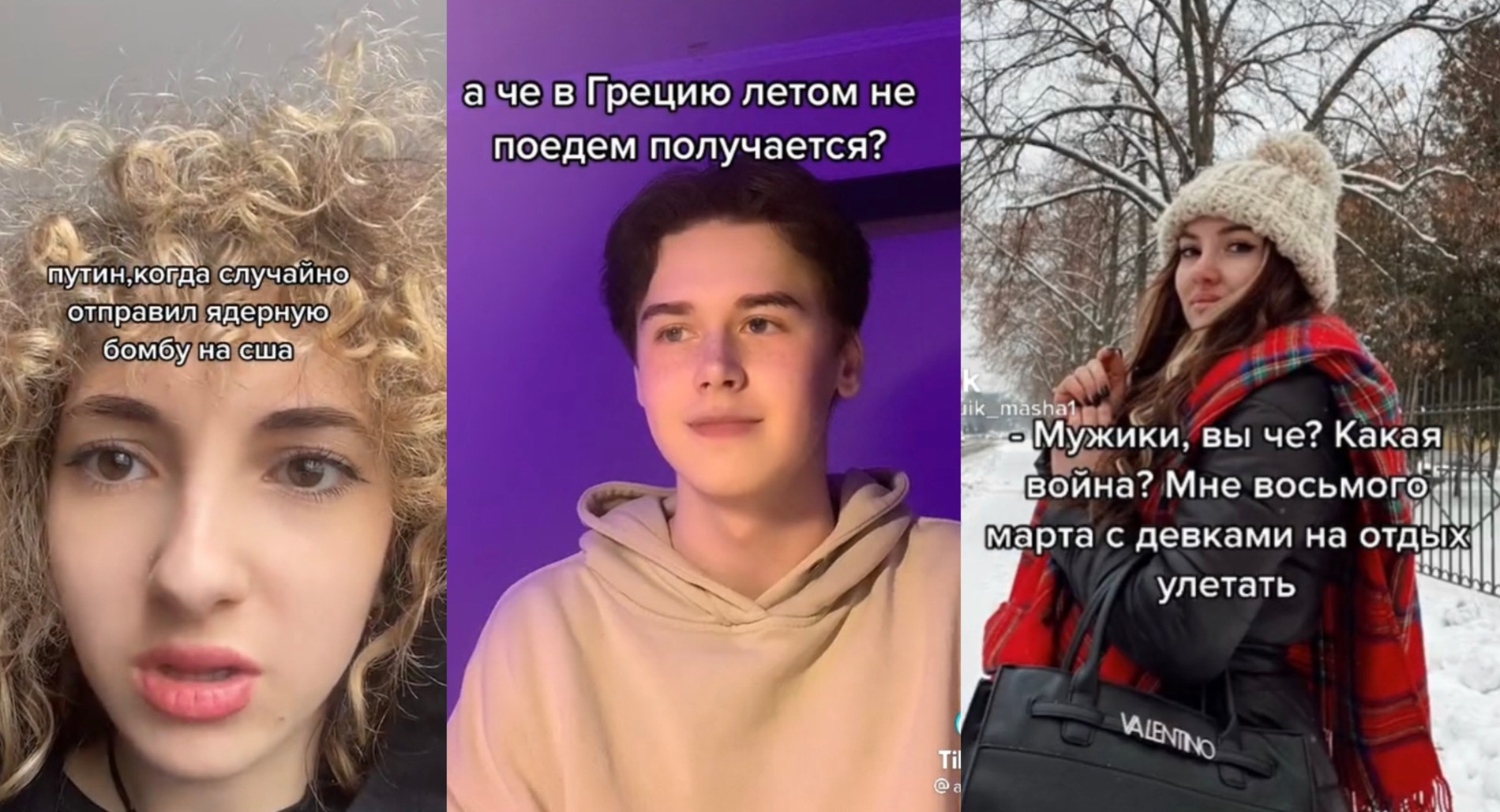 Особенно популярными стали мемы про бомбоубежища, про ядерное оружие и военный призыв. Пока одни тиктокеры шутят про сгоревшие летние путевки, другие просят президентов отложить войну, ведь «у девочек скоро 8 Марта».