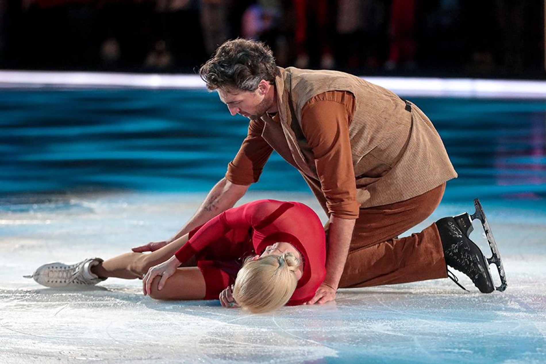 Олимпийская чемпионка в парном катании Татьяна Тотьмянина получила травму на льду. Это произошло на съемках нового выпуска «Ледникового периода». По словам продюсера шоу Ильи Авербуха, Татьяна упала при выполнении одного из элементов (при этом уточняется, что это была не поддержка), после чего конек партнера Ивана Колесникова травмировал колено фигуристки.