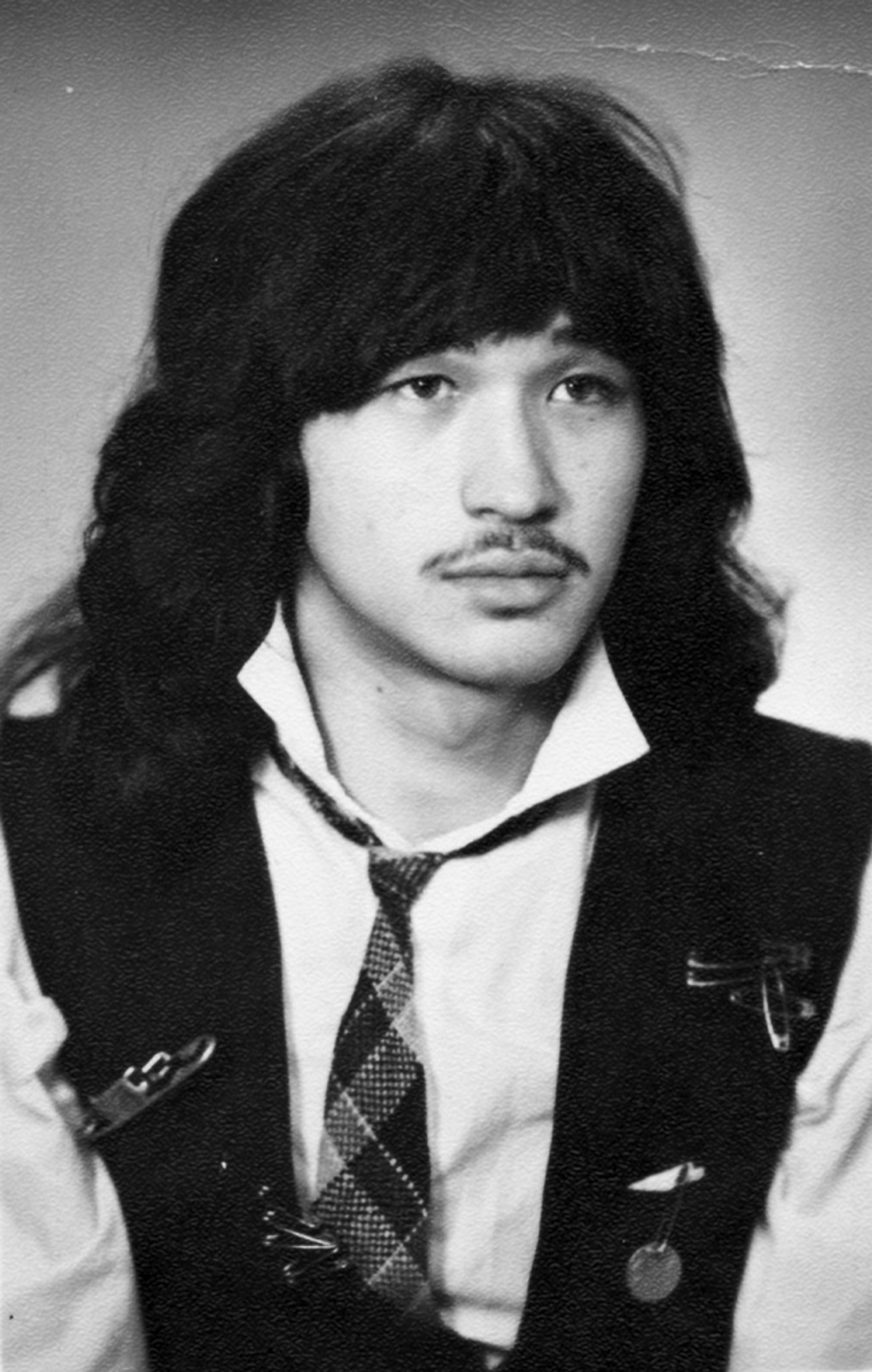 Фото сделано в 1979 году. Кажется, Виктор был чужд формальностям со школьной скамьи, на что указывают его самодельные значки и характерные усики. Жив не только Цой, но и панк!