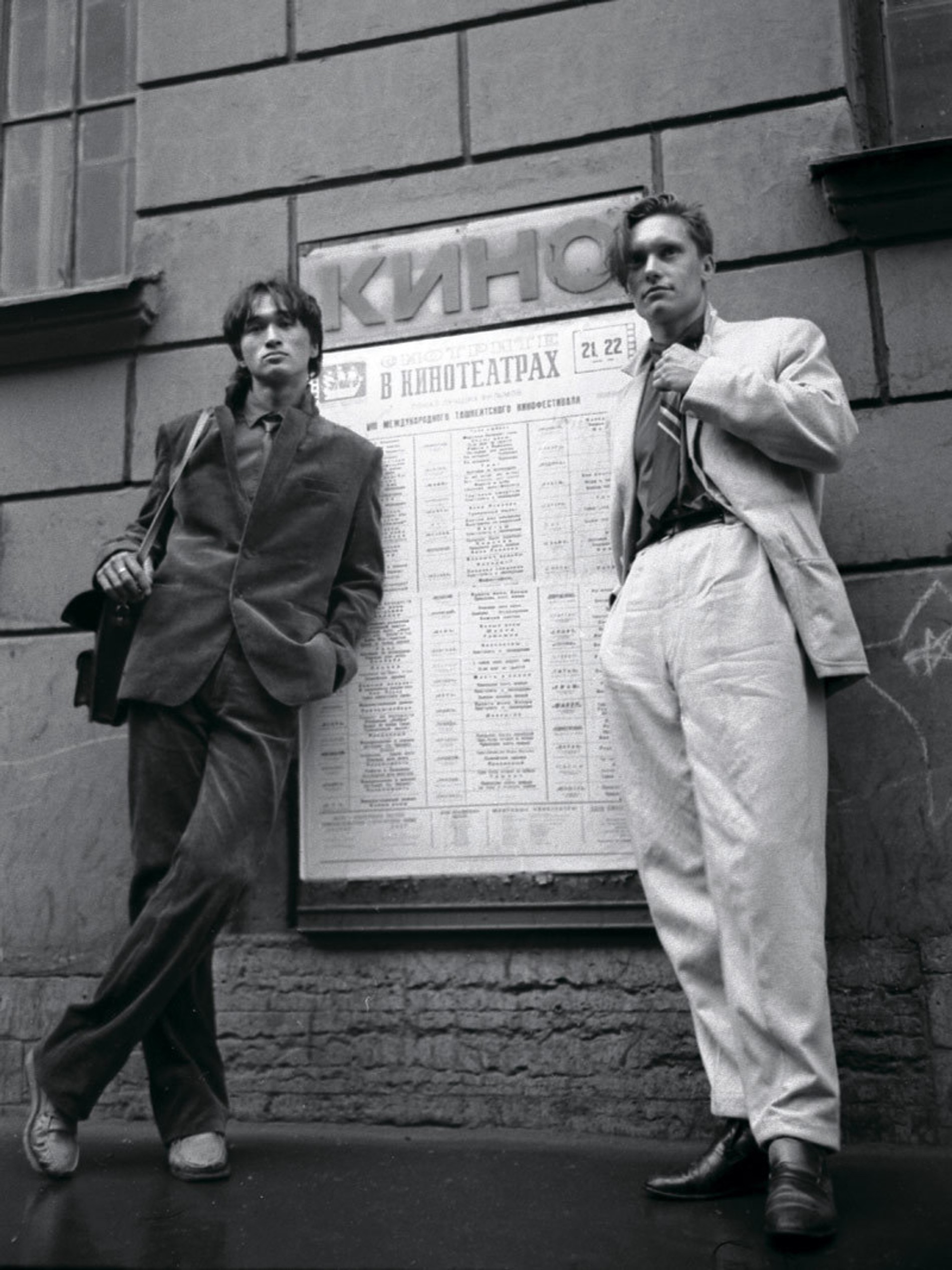 Виктор с Георгием Константиновым — боевым товарищем по бойз-бенду. На фоне — афиша кинотеатра под вкрадчивой надписью «Кино». Узнали?