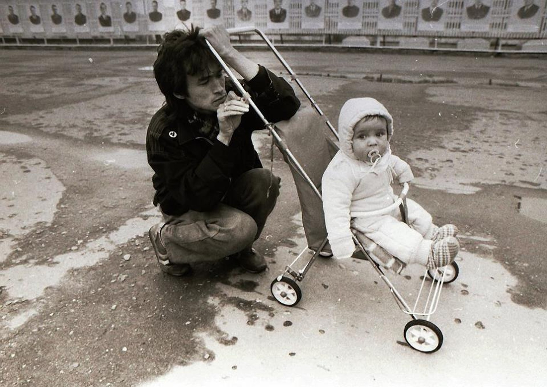 Цой в 1986 году с сыном Сашей. Потом мальчик вырастет и тоже станет рок-музыкантом. Правда, все-таки менее известным, чем папа.