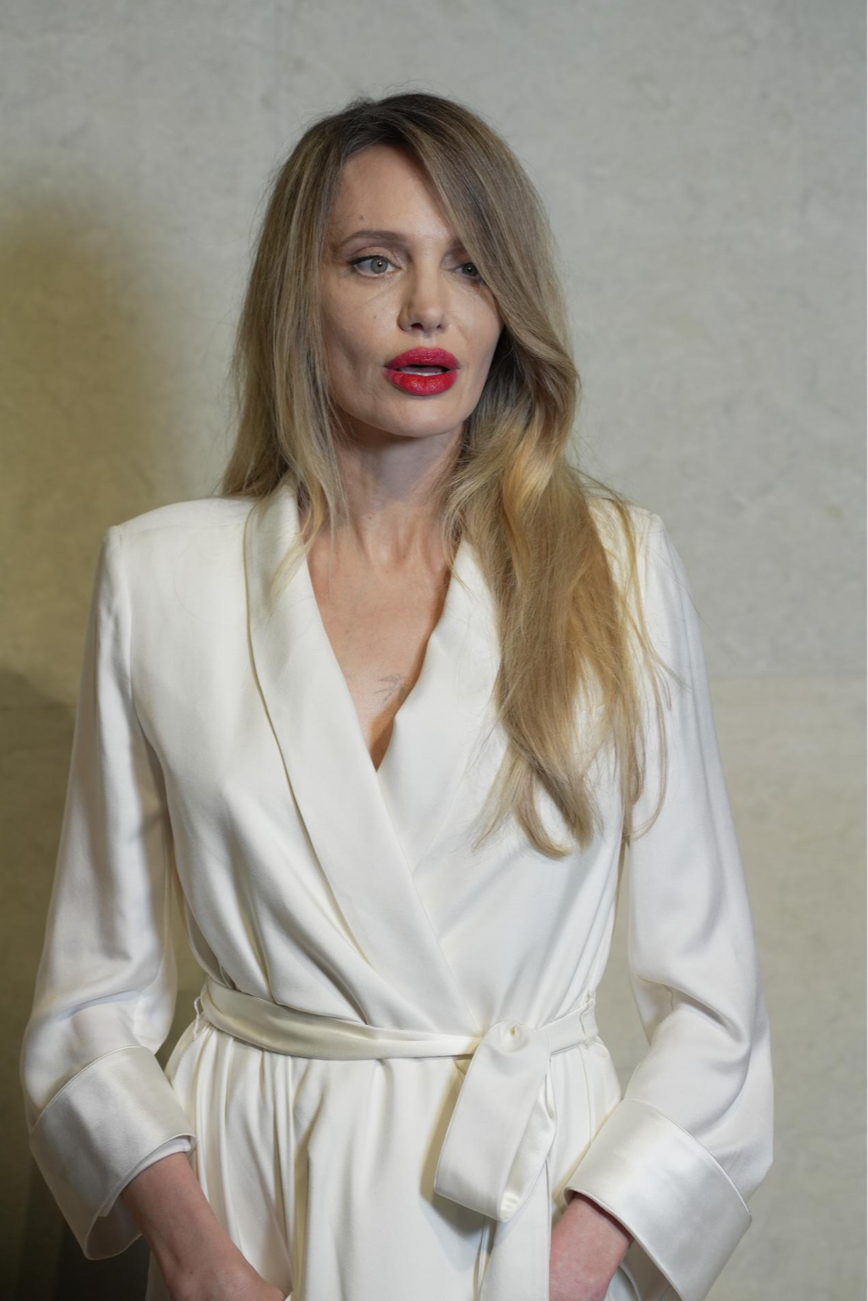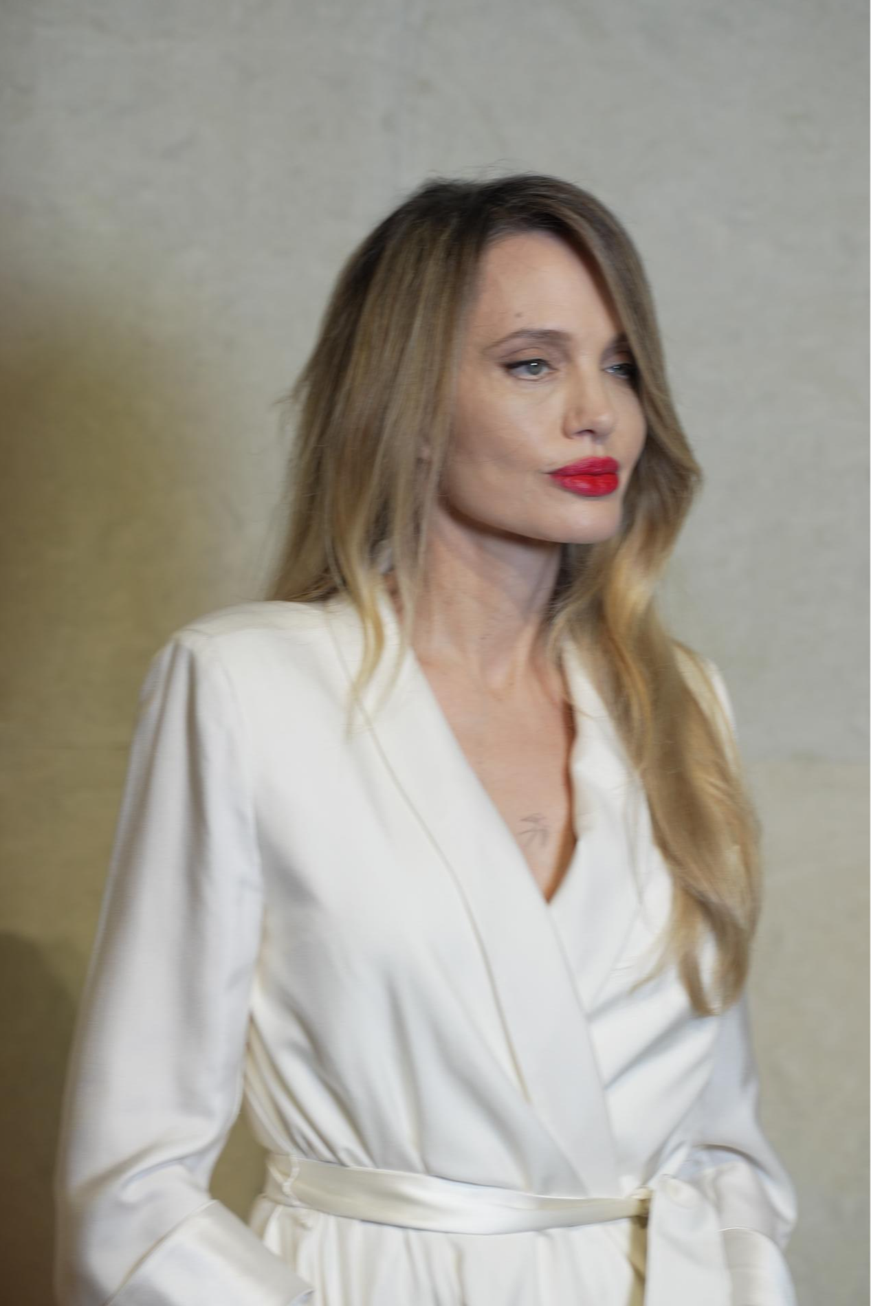 К слову, в Сети появился ещё один снимок Анджелины, сделанный уже на другом мероприятии — в школе её детей. На нём отчётливее видны симптомы заболевания, несмотря на то, что актриса снова пыталась скрыть их за волосами.