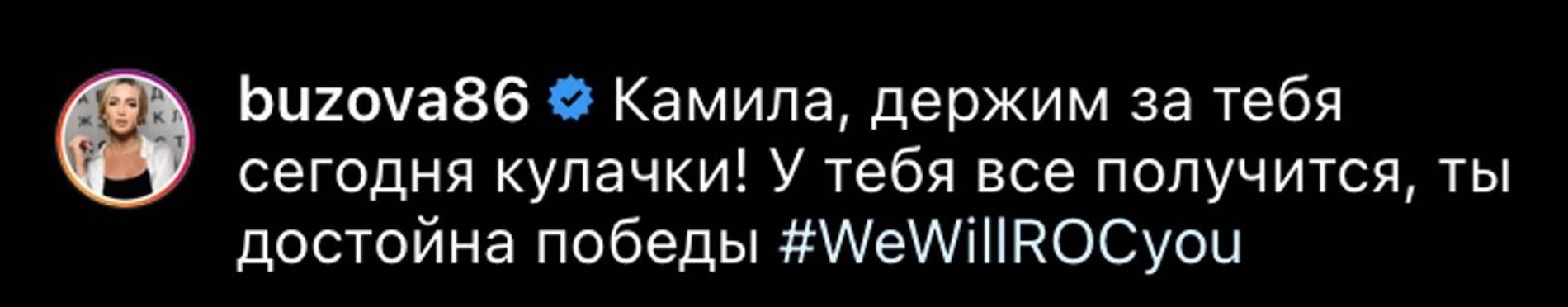 Бузова, Семенович, Бородина и другие звезды поддержали Камилу Валиеву