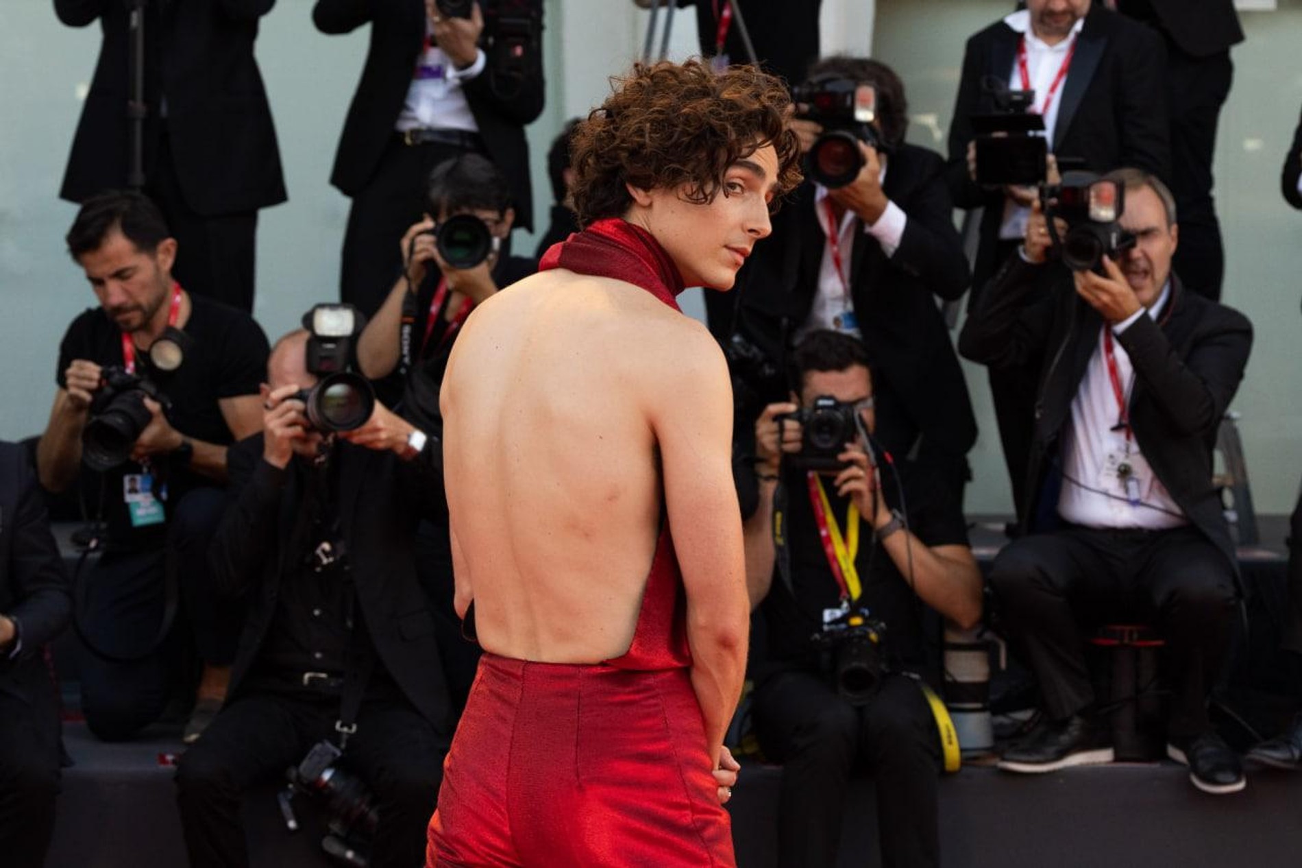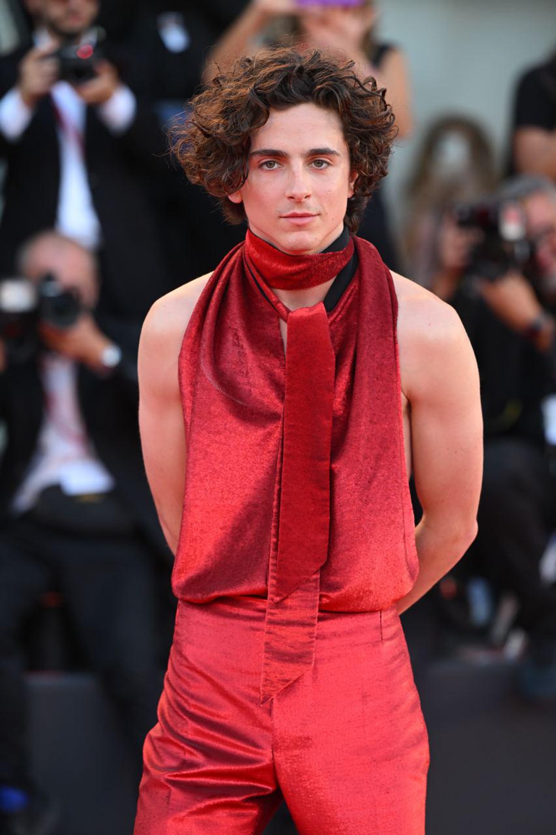Голливудский «золотой мальчик» и раньше баловал нас небанальными образами — но на этот раз он, кажется, решил потягаться в эпатаже с самим Дамиано Давидом из Måneskin! На премьеру нового фильма Луки Гуаданьино «Целиком и полностью» Тимоти пришел в самом эффектном наряде всего Венецианского фестиваля: ярко-красном комбинезоне с открытой спиной. Автором смелого образа стал французский дизайнер Хайдер Аккерманн, который, кстати, очень часто одевает актера. В дуэте они доказывают, что Тимоти не только надежда всего Голливуда, но и абсолютная модная икона. С нетерпением ждем новых выходов!