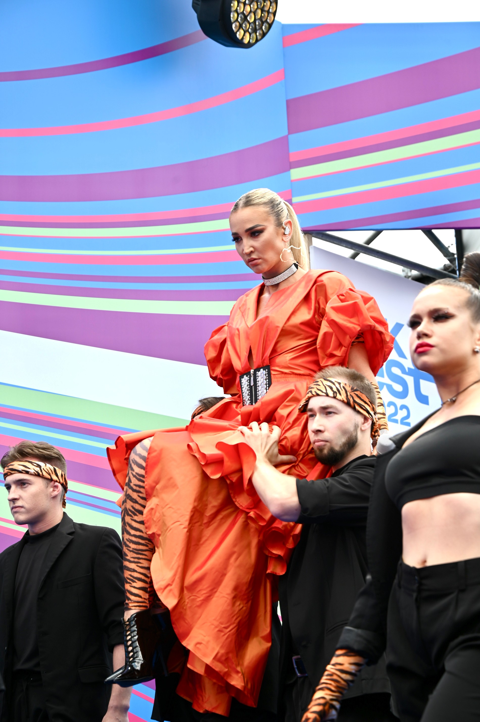 Ольга Бузова приехала на фестиваль прямиком из Африки и, видимо, так впечатлилась местной фауной, что предстала перед фанатами в образе тигрицы. Артистку по-королевски вынесли на сцену в оранжевом платье-трансформере, которое во время шоу превратилось в комбинезон с хищным принтом и сексуальными вырезами. Одобряем!