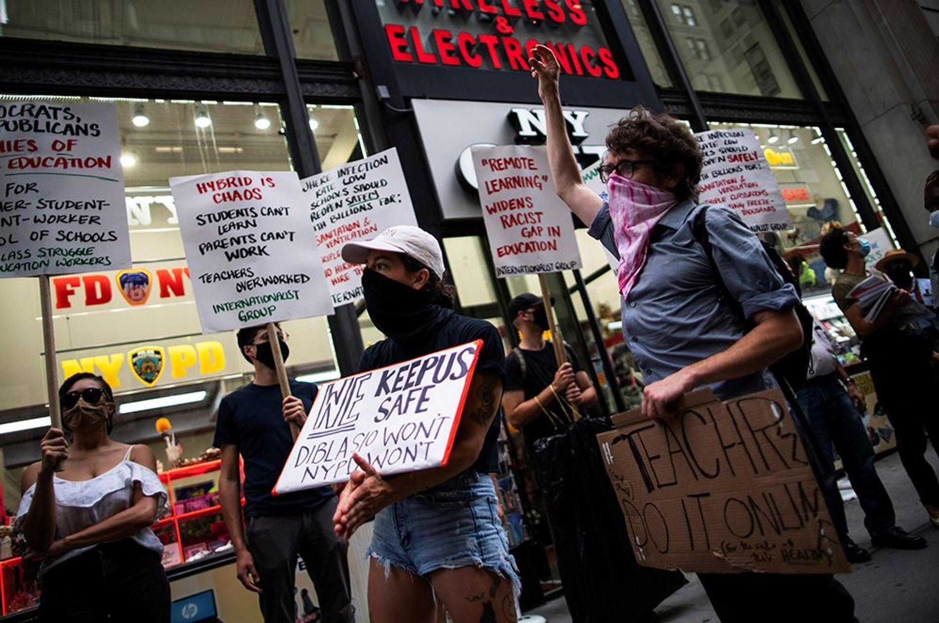 Американцы вновь протестуют: на сей раз жители Нью-Йорка, Чикаго и Лос-Анджелеса вышли на улицы в надежде не допустить начала учебного года. Президент Дональд Трамп четко дал понять: школы и университеты откроются 1 сентября, ведь дети и подростки не входят в группу риска и не должны заболевать коронавирусом. Но у протестующих свое мнение. В митинги против Дня знаний примешалась политика, выборы, расизм и #blacklivesmatter, так что вышел целый карнавал акционизма.