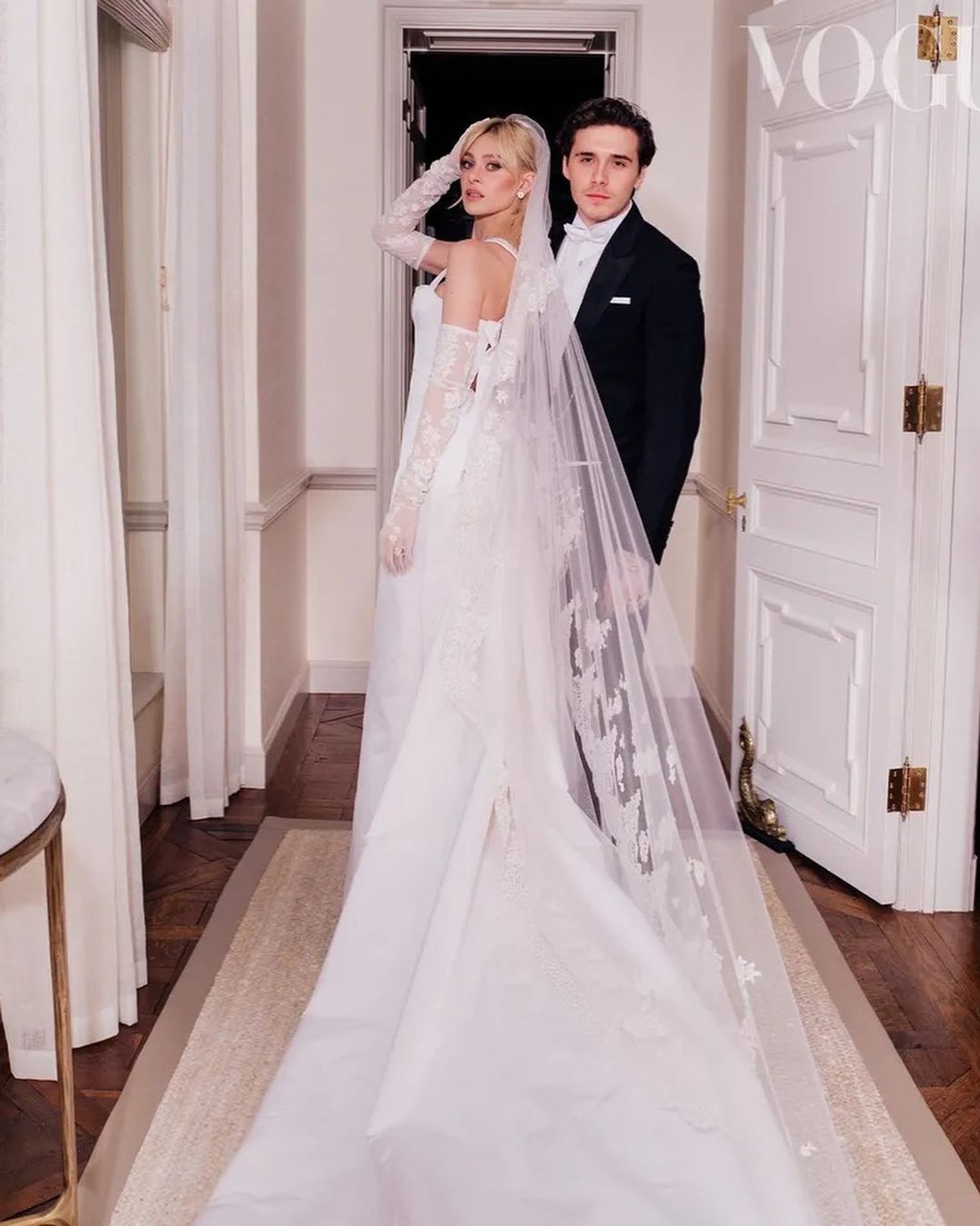 Несколько более интеллигентно, но от этого не менее громко прошла свадьба Бруклина Бекхэма, по которому сохнет половина британских зуммеров, и призовой блондинки Николы Пельтц. Тут тотального спонсорства, к счастью, не предполагалось, и славу разделили поровну Valentino и Dior. Креативному директору итальянского бренда актриса и наследница миллионов доверяет еще с прошлого Met Gala, поэтому на примерку своего классического платья со шлейфом (приблизительная стоимость этого удовольствия — $ 150 000) летала в Рим всего один раз. А Ким Джонс из Dior Homme, который отвечал за костюмы всех мужчин, кроме, собственно, великолепного отца невесты, вообще, давний друг семьи. В любом случае, хотя молодые и уверяли, что в качестве примера для подражания выбрали свадьбу Дэвида Боуи и Иман, результат получился ближе к праздникам в духе семейки Трампа.