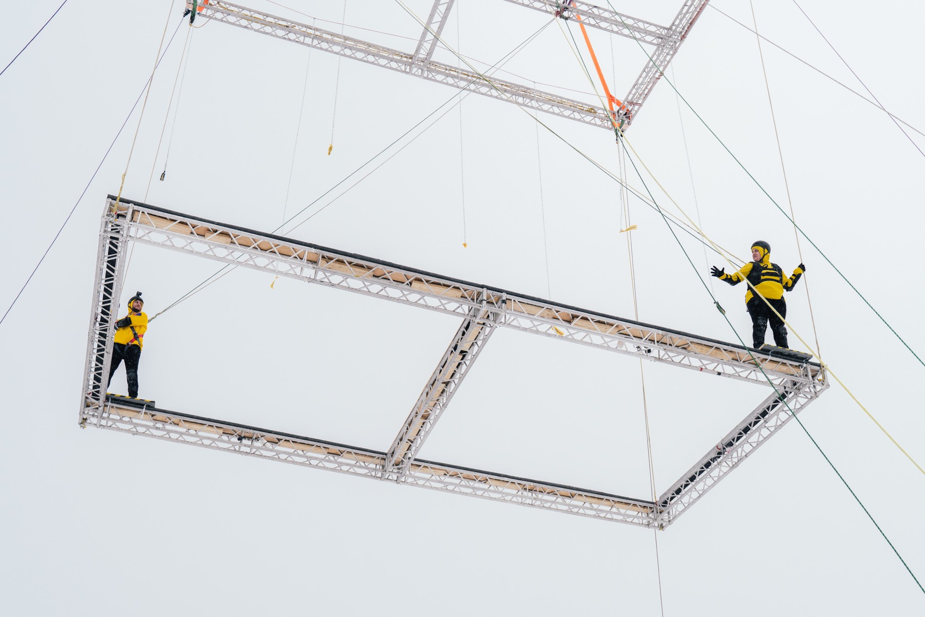 «Перед одним из испытаний у нас замерзла аппаратура, пришлось срочно придумывать новое [задание]. Мы действуем здесь и сейчас: садимся и придумываем либо с нуля, либо из заготовок. Все страховки, канаты и прочие вещи мы везли из Москвы, поэтому фантазировали на основе имеющихся средств. После брейншторма мы обычно идем к каскадерам, они злятся и говорят, что мы сумасшедшие, но соглашаются»
