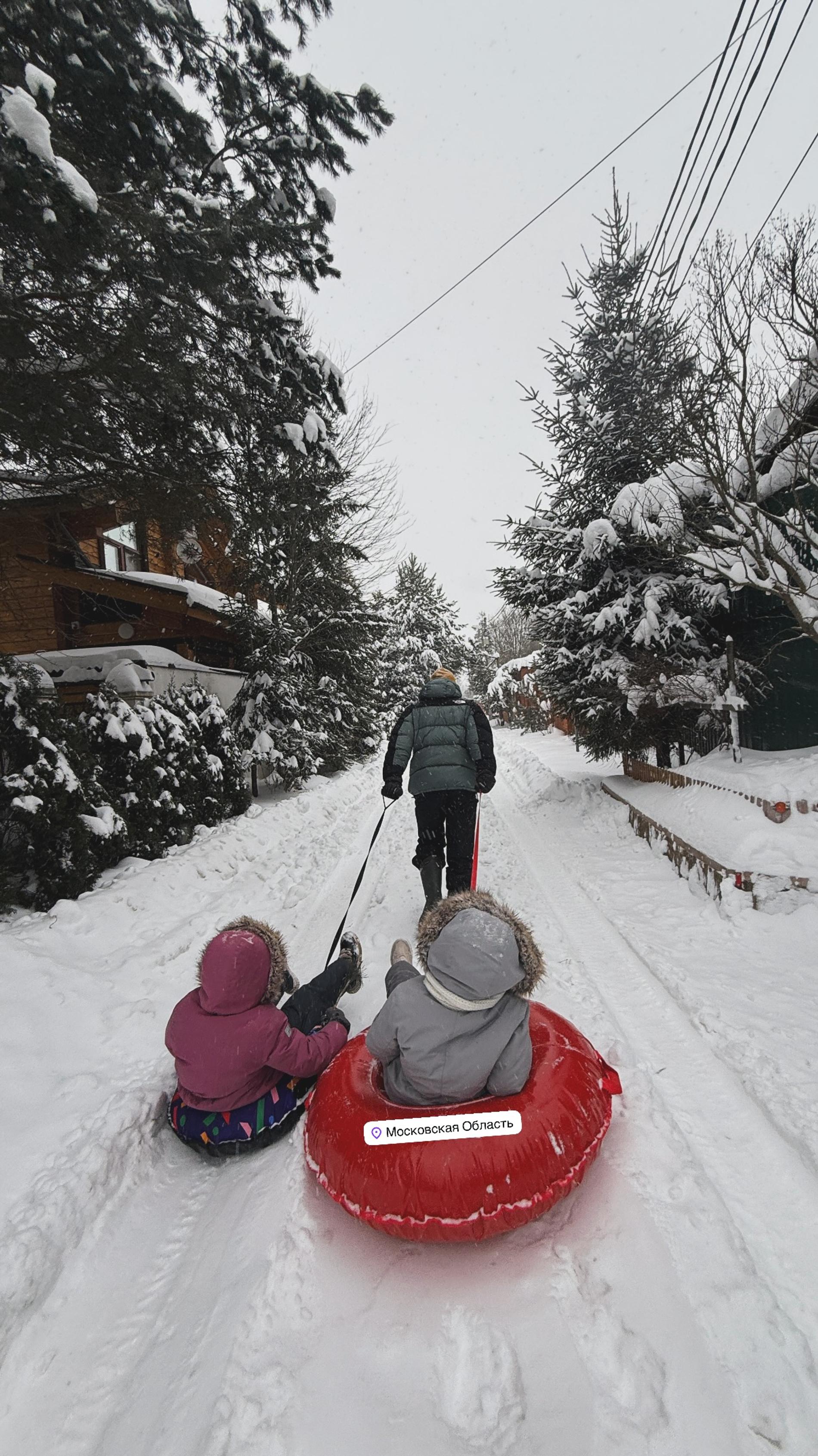 Жена Юры Борисова показала, как он катает дочерей на тюбинге в Подмосковье