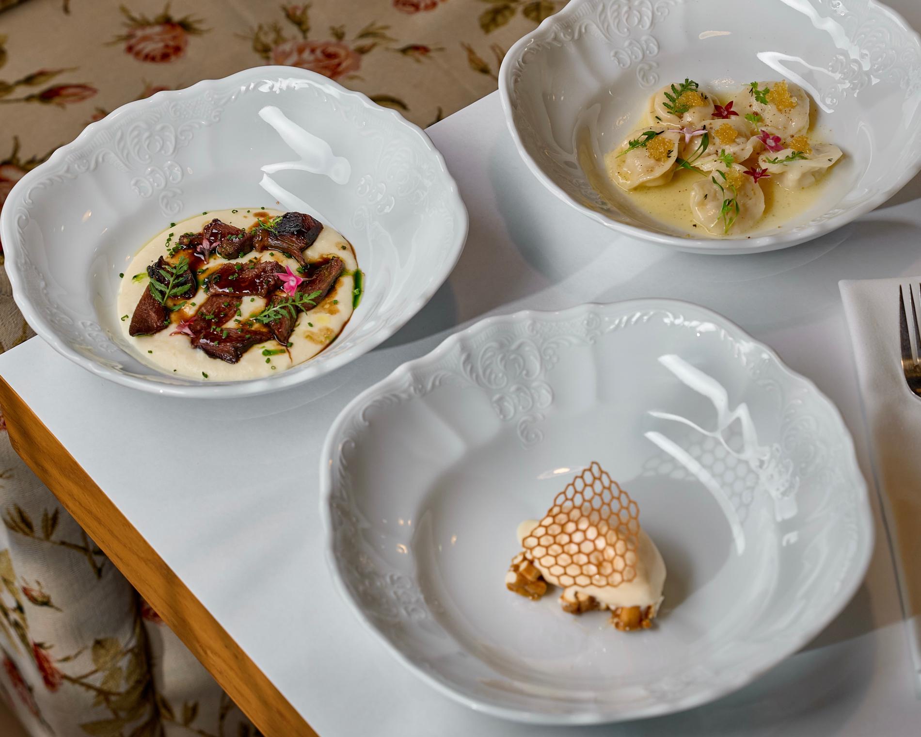 Интерпретировать разные кухни мира на русский лад у нас любят и умеют. Так, французские блюда становятся ещё более утончёнными, если в них добавить краснополянские акценты. Свежести паштету из цыплёнка придаст клубника и бальзамик. Местные абрикосы помогут сыграть на контрасте вкусов в сочетании с уткой в закрытом слоёном пироге питивье. Не оставят никого равнодушным и нежные текстуры фетучини со сморчками и сливочно-трюфельным соусом.
