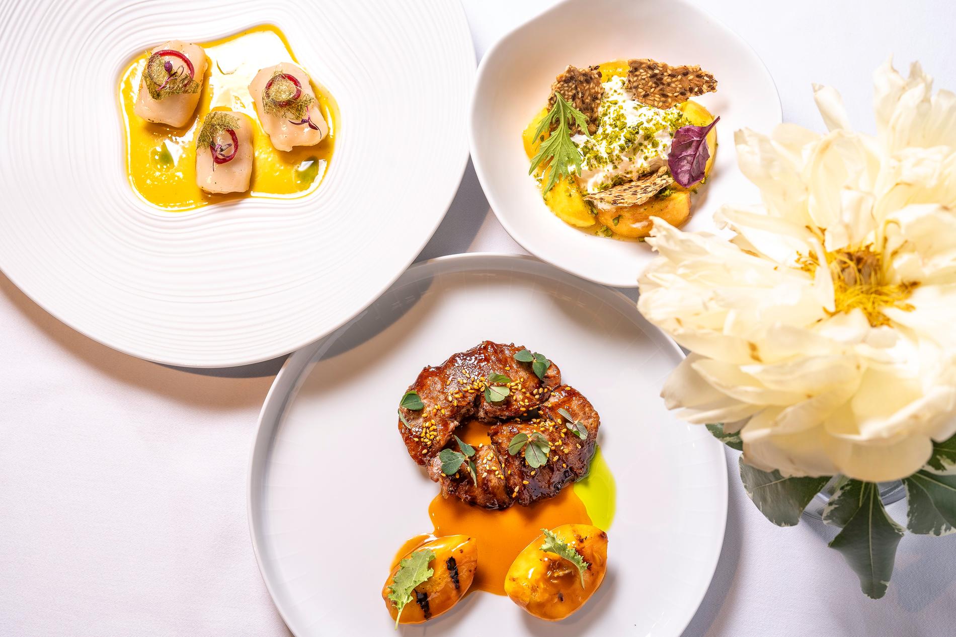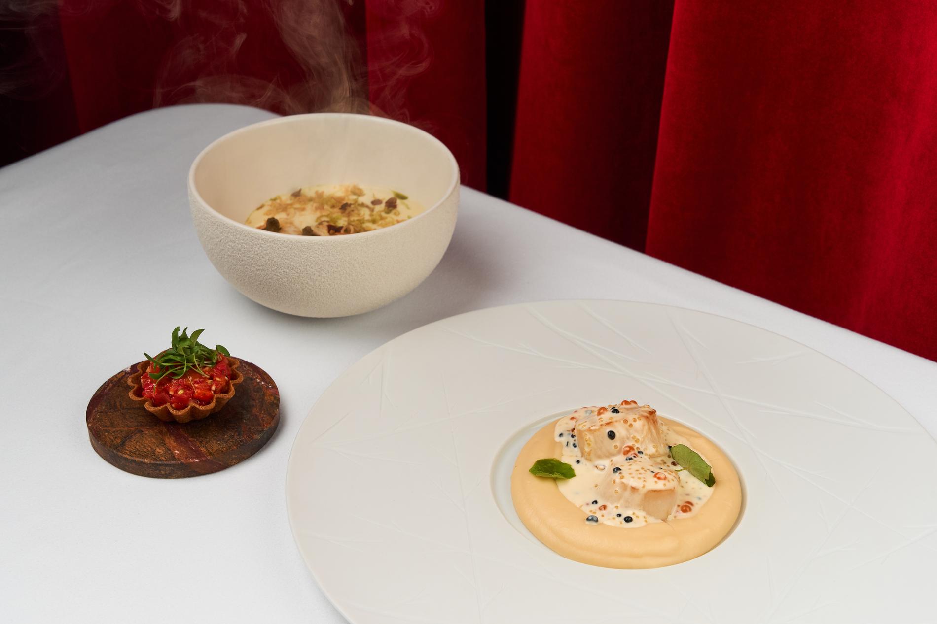 Не секрет, что один из гастрономических секретов — это сочетать несочетаемое. Так, щёчки дальневосточного тунца сложно представить рядом с абрикосами: на деле же это вполне гармоничный дуэт с нежными отношениями. Сахалинский гребешок тоже абсолютно неприхотлив, однако муршмула и соус из дыни — не самые очевидные компаньоны для него (как бы не так!). Мягкая страчателла с персиками — классика жанра, но хрустящие чипсы из семечек придают союзу драйва.