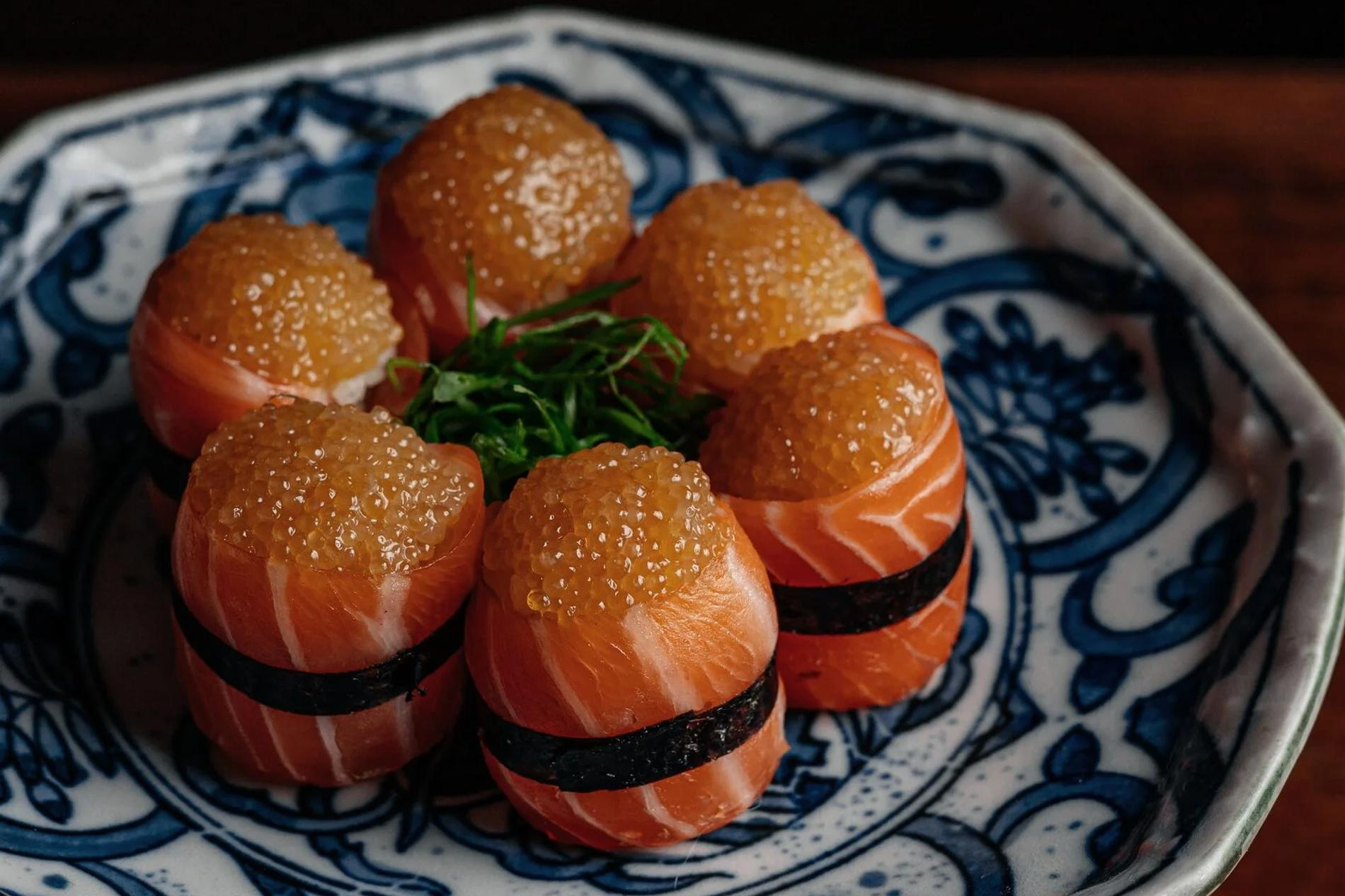 Кажется, мы уже смирились с тем, что не Япония является родиной роллов, а долина реки Меконг на полуострове Индокитай. Зато хенд‑роллы — чисто японское изобретение: угорь, креветка, хамачи, шима‑аджи — выбирайте начинку по душе. Трендовые нынче осидзуси тоже придумали в Стране восходящего солнца: гребешок или опалённый лосось с красной икрой — да, определиться сложно. В таких случаях всегда можно обратить внимание на классику вроде обёрнутых в слайсы лосося роллов с щучьей икрой.
