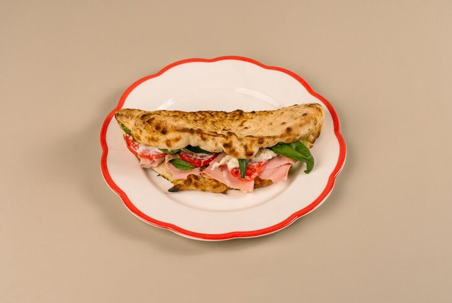 У пиццы настолько гибкий характер, что она допускает не только любую начинку, но и любую форму — классический круг, квадрат по‑сицилийски, прямоугольник по‑римски… А как насчёт закрытого варианта под названием «кальцоне»? Но можно не закрывать до конца, сложив лепёшку с начинкой пополам. Получится сэндвич‑пицца. Внутри может оказаться комбо из мортаделлы, помидоров и страчателлы либо пастрами и соуса из чёрного чеснока.