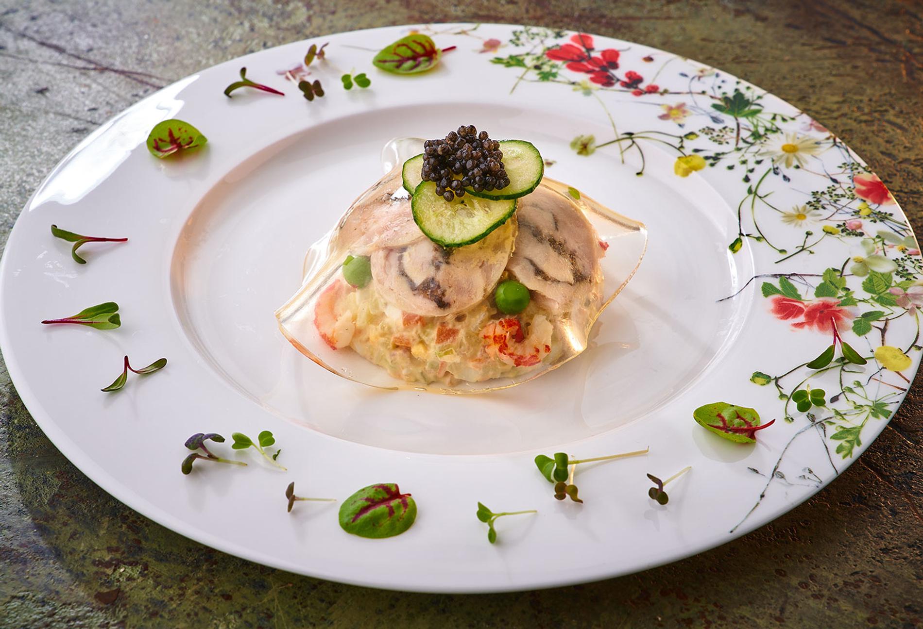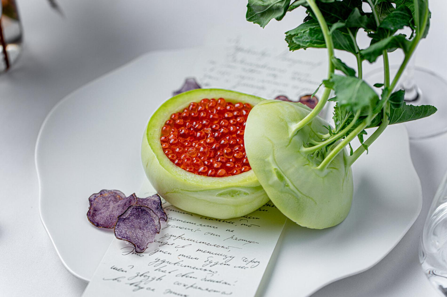 Матрёшка — это не всегда про лубок, особенно на фоне чугунной лестницы и индустриальных мотивов. Так и старое-доброе заливное приобретает особое звучание, когда приготовлено из муксуна и краба. Крабовый салат, в свою очередь, не прочь изменить рецептуру, в которую можно добавить виноград, кольраби и грушу. А мимоза хороша с креветками. А как вам катанка с белыми грибами и пшеном, приготовленным по методу ризотто?