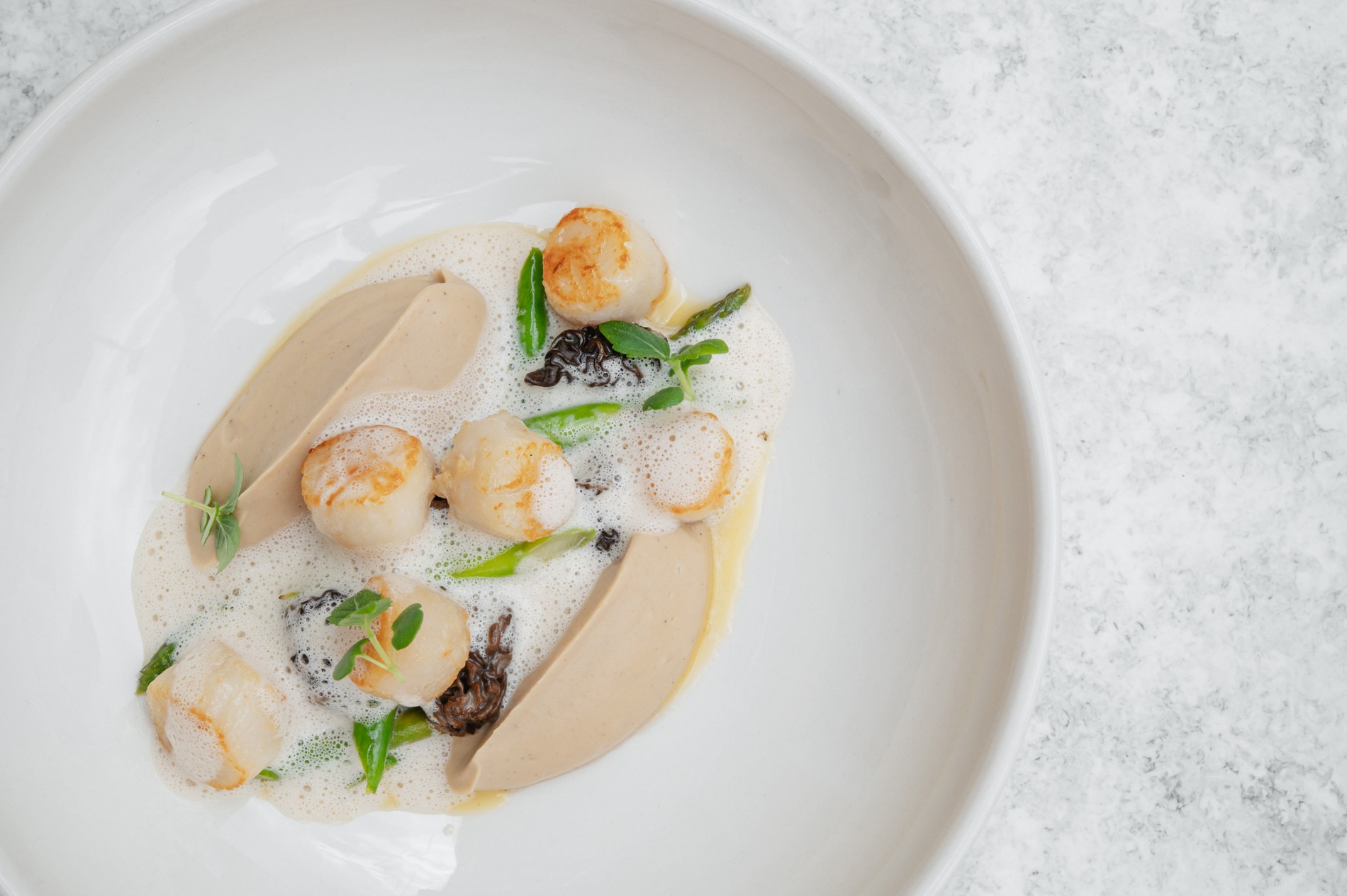 Последние новинки в меню — ризотто с летним трюфелем и патагонским кальмаром и форель с бок-чой и соусом мисо. Из знакомых гостям блюд советуем попробовать палтус конфи с картофельным кремом, молодым шпинатом и соусом из эстрагона или оценить гребешок со спаржей и цветной капустой.