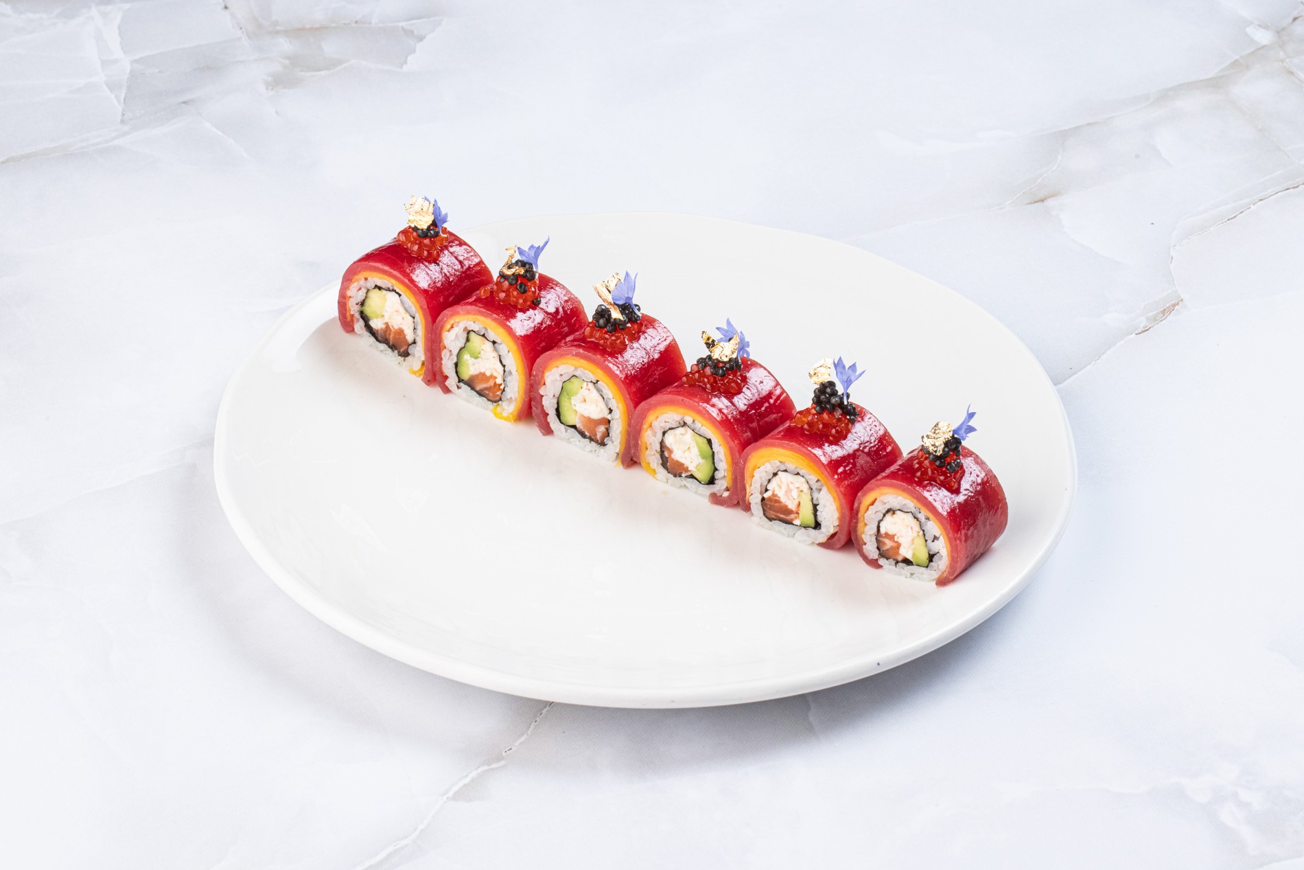Ролл с тунцом и сибас с авокадо в ресторане «Рыба моя»