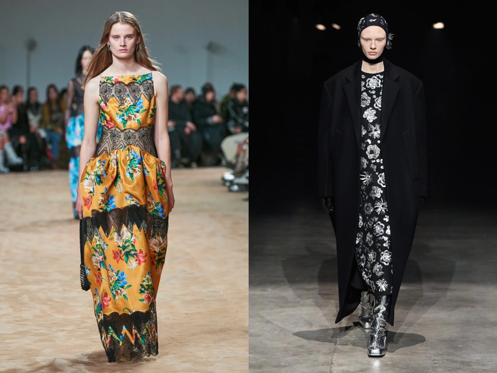 Осенние цветочные композиции не избежали мейнстримной готики. В большинстве случаев флоральные мотивы в виде принтов и вышивки подчеркнуто монохромны. Дизайнеры дополняли подобные образы брошами и черным кружевом. Мистика и отсылки к потустороннему считываются буквально во всем! Наконец-то осеннюю хандру можно списать на модную загадочность.