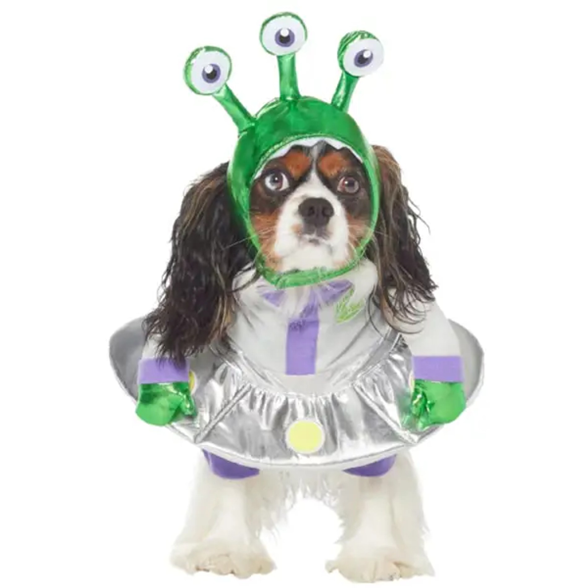 Ваш щенок может облететь галактику или, во всяком случае, окрестности в этом космическом костюме. Но мало ли на что еще способны собаки из других цивилизаций. По заявлениям производителя, образ подходит для щенков весом вплоть до 40 килограмм.