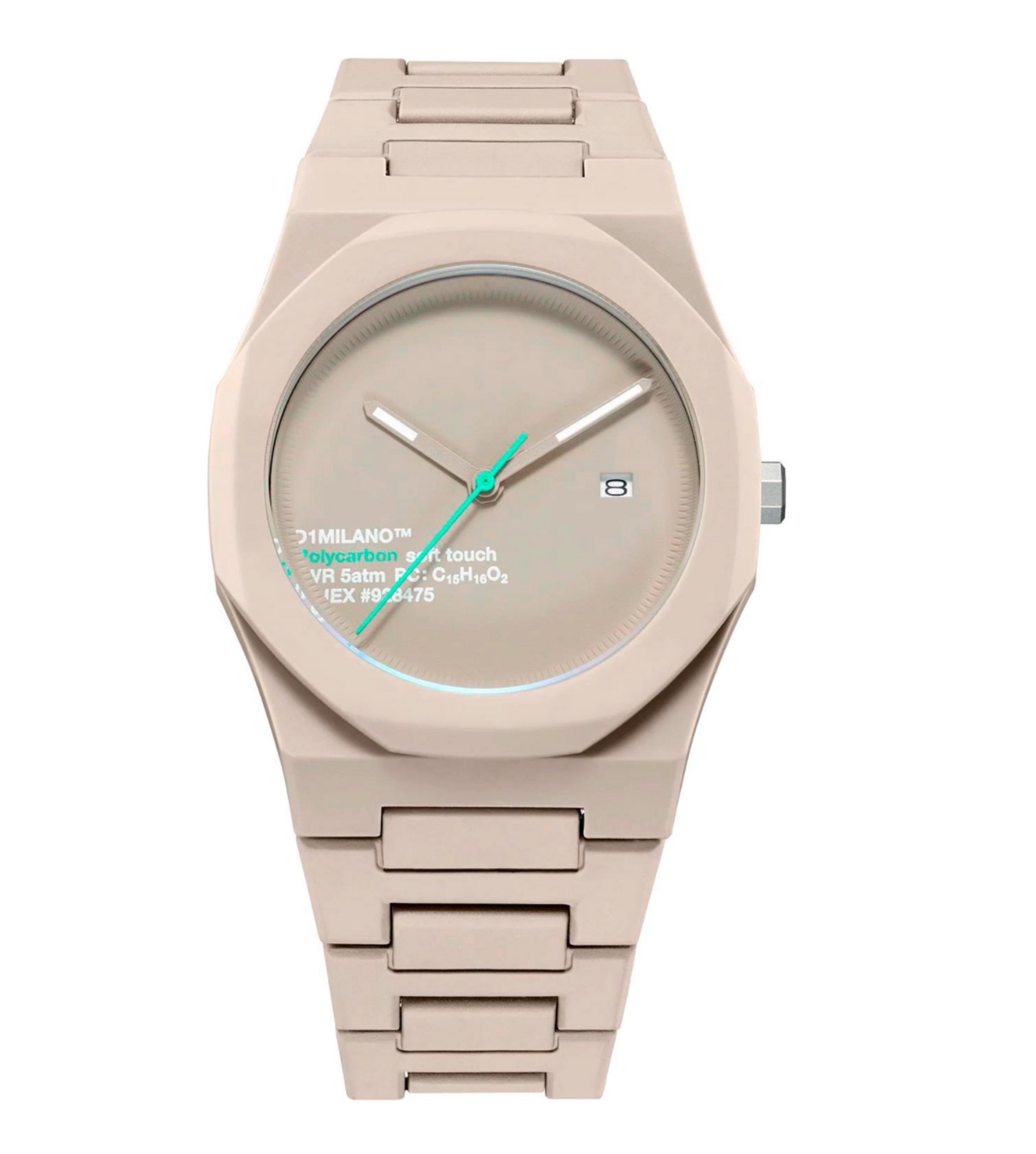 Кажется, в случае с часами Hot Stone Polycarbon от бренда D1 Milano работает принцип трех «у»: унисекс, ультралегкие, универсальные… Аксессуар из практически невесомого поликарбоната подойдет как женщинам, так и мужчинам, уместен он и днем, и вечером. Словом, это отличный молодежный вариант: лаконичный дизайн, характерной чертой которого является циферблат без меток, тому подтверждение. Еще и раскладывающаяся застежка имеется очень удобная — да, это уже четвертое «у».