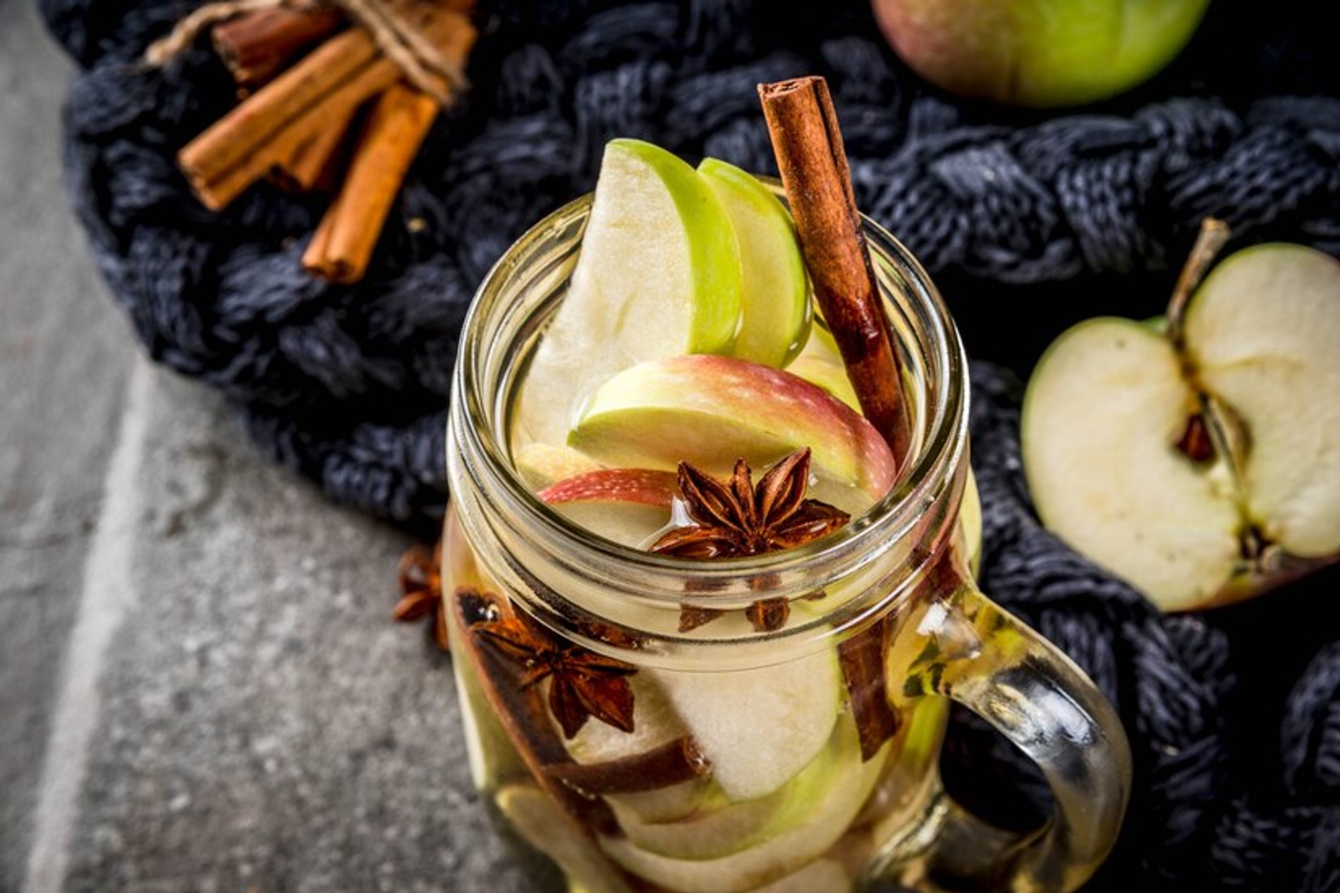 Нарежьте спелые яблоки на дольки, залейте холодной кипяченой водой и добавьте корицу. Подождите, пока фрукт отдаст полезные вещества воде. Напиток лучше приготовить утром или в обед, чтобы он успел настояться в холодильнике и был готов к ночи. Вода с яблоком и корицей ускорит обмен веществ, а значит, вы будете худеть быстрее.