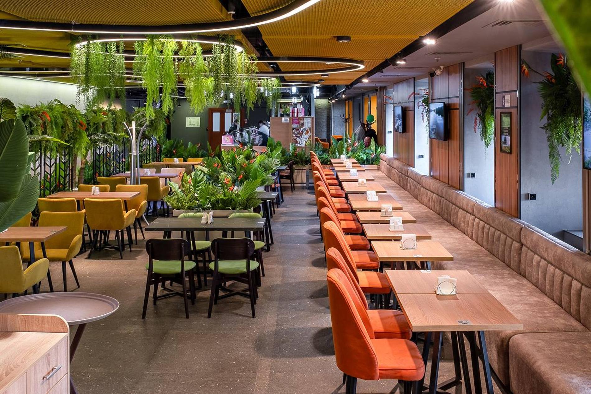 Мидии и лангустины, тартар из говядины или куриные крылья — более 90 позиций из меню предлагают за 250 рублей. То же самое касается и напитков. В ресторанах сети представлены разные кухни мира: русская, итальянская, паназиатская, баварская, мексиканская. Ассортимент можно посмотреть только через QR-код, оплата тоже проходит онлайн. Главное — после заказа никуда не пересаживаться: в противном случае шансов, что вас найдет официант с заказом, мало.