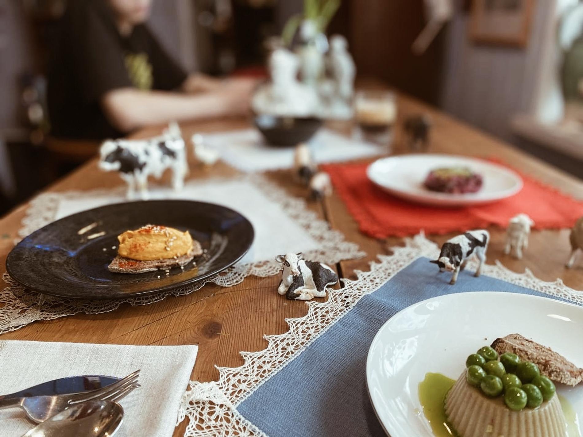Ресторан в лесу при семейной ферме. Меню здесь нет: подают сет из шести блюд, некоторые запекаются в настоящей русской печи. Готовят и на открытом огне — не только мясо, но и стейки из капусты, чесночные стрелки, икру плотвы. А во время трапезы гостей знакомят с русскими гастрономическими традициями: рассказывают о том, что мед нужно пить, кисель — есть, ребра — томить, капусту — крошить, а масло надо бить.